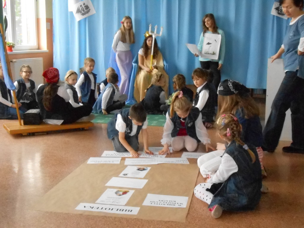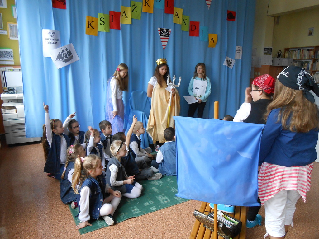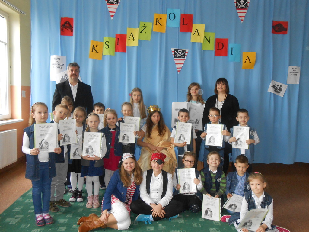 Ale najpierw uczniowie musieli zdać egzamin i wykonać bardzo trudne zadania na wyspie Książkolandia. Na wyspę tą porwali ich piraci. Na szczęście wszystko skończyło się dobrze, piraci nawet zaprosili naszych pierwszaków na słodką uroczystość.