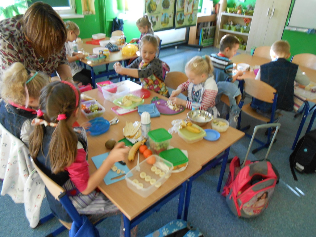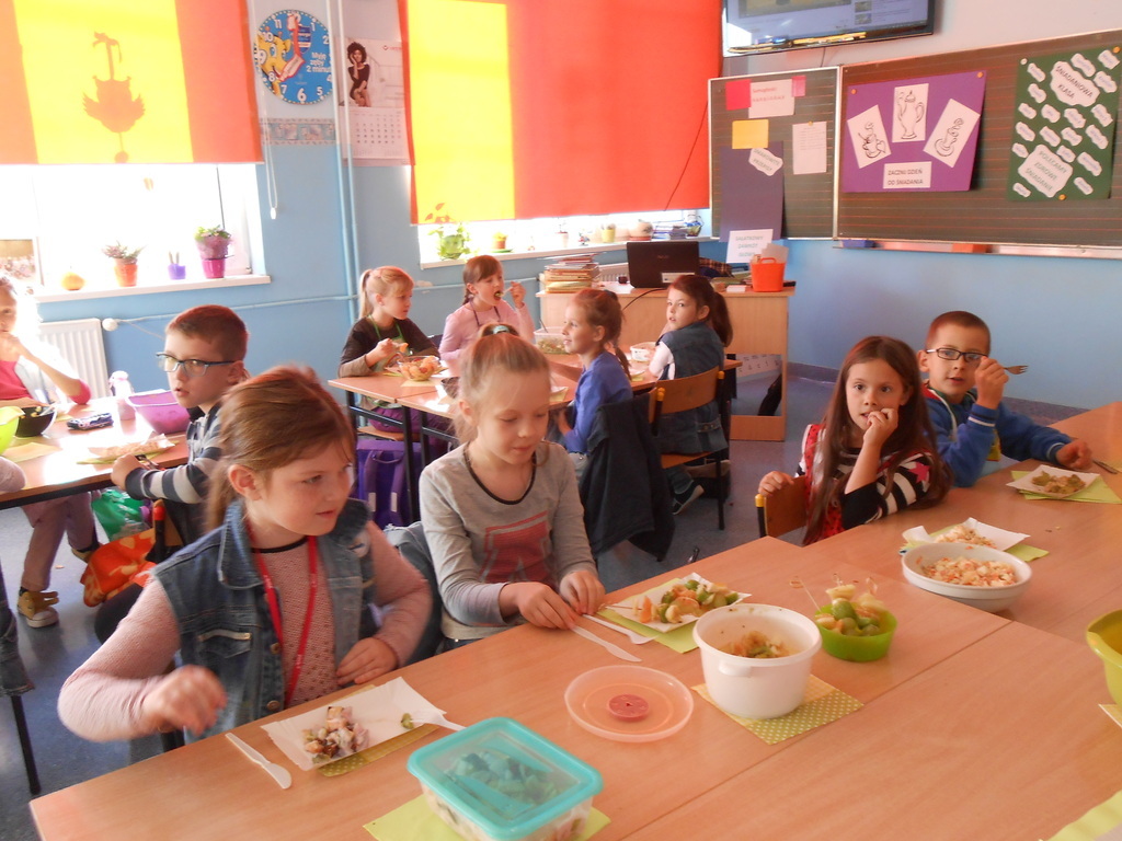 Uczniowie najpierw uczestniczyli w pogadankach na temat znaczenia spożywania pierwszego i drugiego śniadania. Później rozpoznawali gatunki warzyw i owoców, a następnie własnoręcznie przygotowywali sałatki, według rodzinnych przepisów.