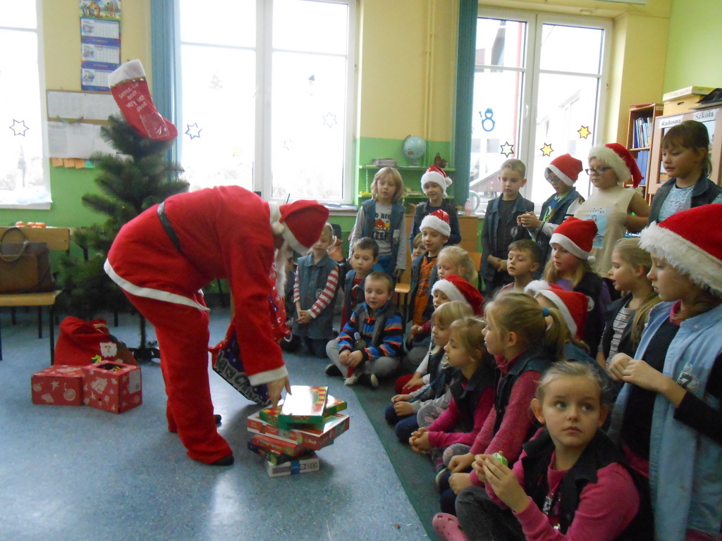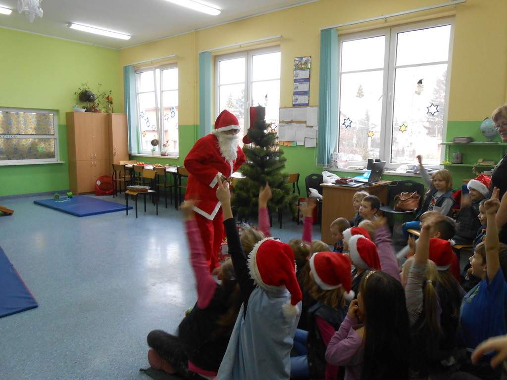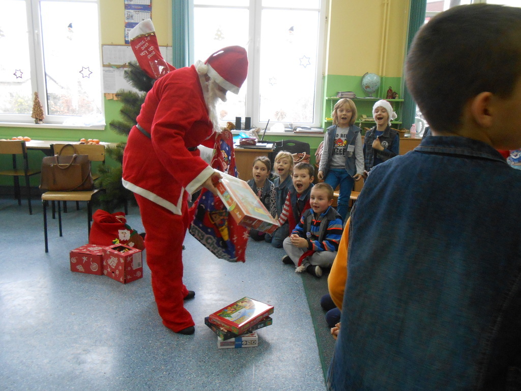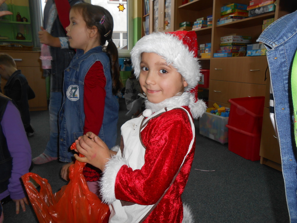 Dzieci, które biorą czynny udział w życiu świetlicy musiały być bardzo grzeczne, bo i do nich przybył Św. Mikołaj. 04 grudnia przybył do nas Mikołaj. Wyczekiwany i wypatrywany przybył do dzieci z workiem pełnym prezentów. Gdy się pojawił wszystkim zabłysły w oczach iskierki radości. Mikołaj chciał się jednak upewnić, że daje prezenty grzecznym dzieciom, dlatego wypytywał o ich zachowanie, prosił o piosenki, wierszyki.