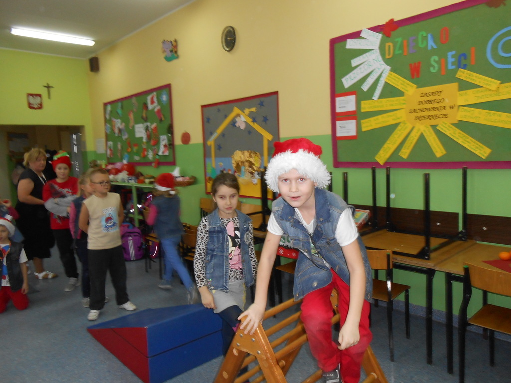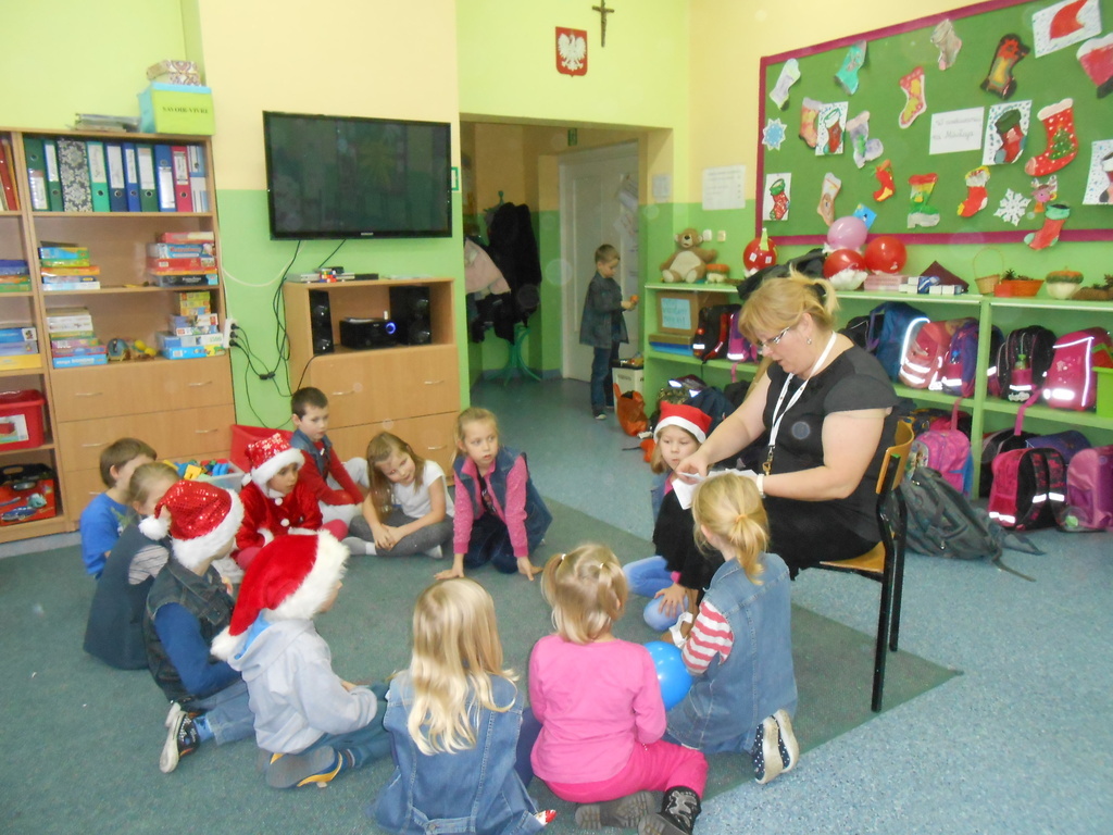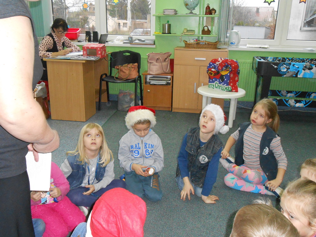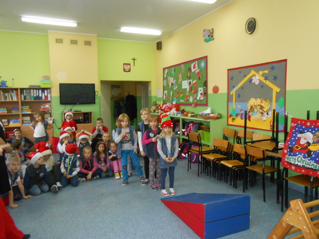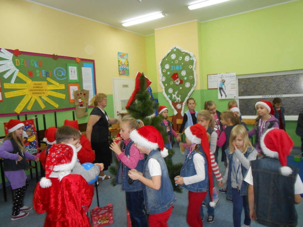 Dzieci, które biorą czynny udział w życiu świetlicy musiały być bardzo grzeczne, bo i do nich przybył Św. Mikołaj. 04 grudnia przybył do nas Mikołaj. Wyczekiwany i wypatrywany przybył do dzieci z workiem pełnym prezentów. Gdy się pojawił wszystkim zabłysły w oczach iskierki radości. Mikołaj chciał się jednak upewnić, że daje prezenty grzecznym dzieciom, dlatego wypytywał o ich zachowanie, prosił o piosenki, wierszyki.