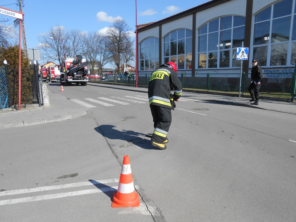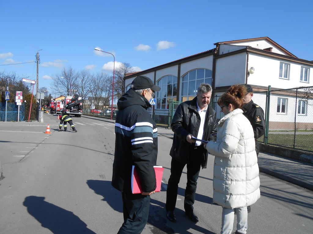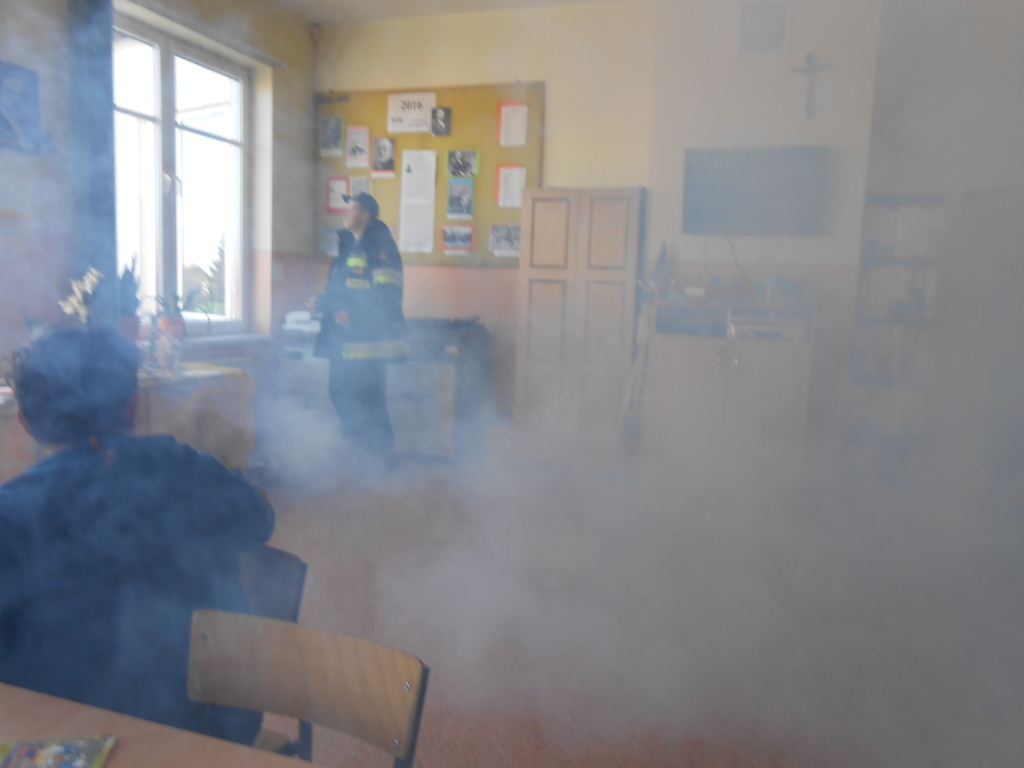 Najpierw odbyła się ewakuacja całej szkoły, ponieważ (hipotetycznie) w bibliotece szkolnej wybuchł pożar i dwoje uczniów zostało poszkodowanych. Pan dyrektor wezwał straż i ogłosił ewakuację. Strażacy uratowali naszych kolegów i udzielili im pomocy.