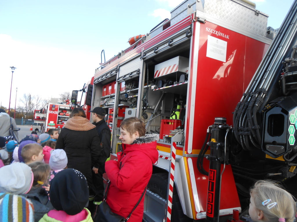 W kolejnej części spotkania ze strażakami oglądaliśmy sprzęt strażacki, zwiedzaliśmy samochody strażackie, poznawaliśmy trudną pracę strażaków.