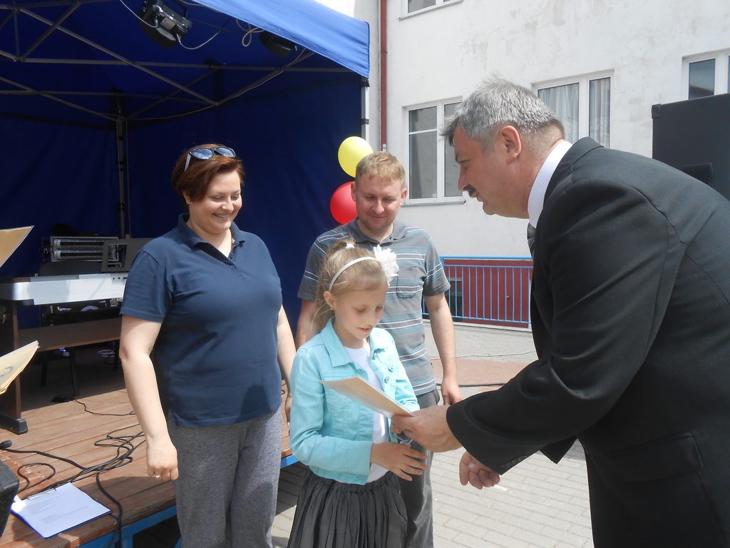 Na uroczystości rodzinnej, bo tak śmiało możemy nazwać piknik – było wiele atrakcji: na początku pan dyrektor wręczył stypendia naukowe najlepszym uczniom klas IV-VI: