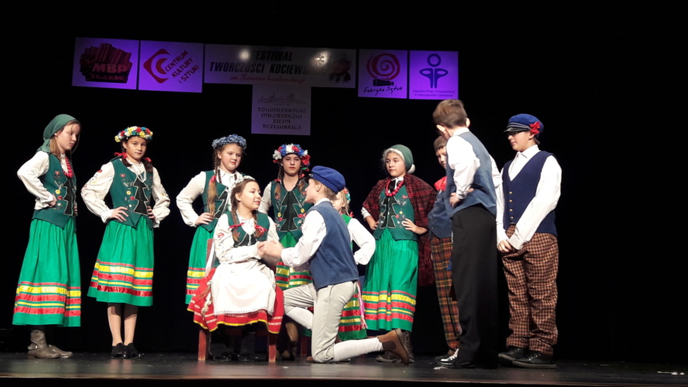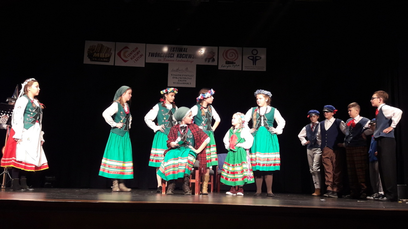 - w kategorii inscenizacje nasi uczniowie zajęli I miejsce. Wystawili sztukę Wesele Kociewskie. Uczniów przygotowały panie Karolina Garska i Karolina Kornas. W przedstawieniu brali udział: Zuzanna Sawczak, Amelia Kasprowicz, Krystian Szyjkowski, Wiktoria Dus, Wiktoria Tuszyńska, Oliwia Stawicka, Klaudia Pehnke, Zuzanna Jabłońska, Szymon Podjacki, Szymon Kamrowski, Martyna Bronowicka, Mateusz Wojcieciechowski