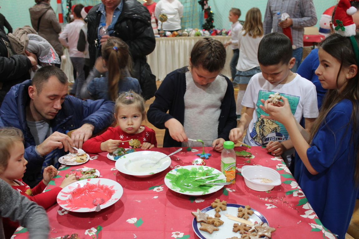 W czasie kiermaszu odbyły się występy naszych uczniów, którzy zaprezentowali zabawny występ pt.”Kłopoty w Laponii” (Va), taniec świąteczny w wykonaniu zespołu tanecznego ( uczniowie z klas I-III), pastorałka w wykonaniu najmłodszych, czyli oddziału przedszkolnego, kolęda zagrana na skrzypcach (II a), świąteczne piosenki, kolędy zaśpiewane przez uczniów klasy I a, II b, II c, III a, III b, III c, IV b, chórek szkolny. Mogliśmy także zobaczyć taniec w wykonaniu Mistrzów Tańca Towarzyskiego: Zofii Bonk i Borysa Szoły.