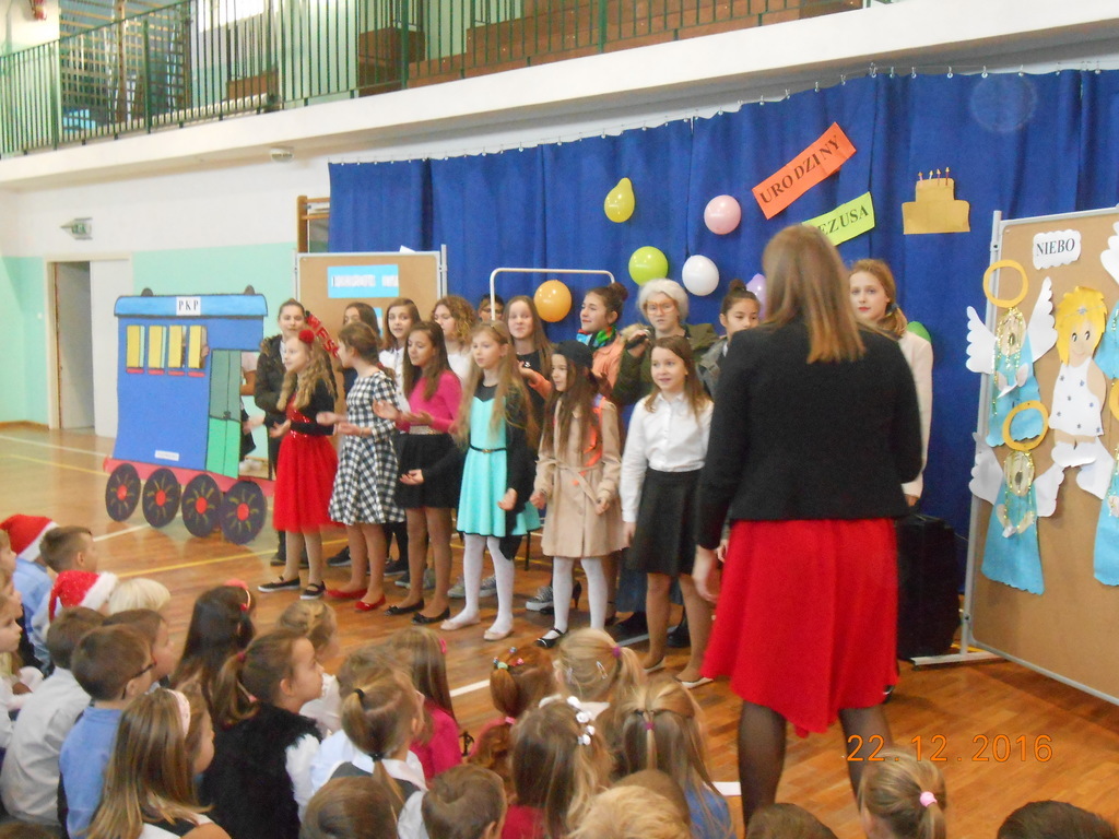 Była to współczesna wersja jasełek - o zaganianych i zapracowanych ludziach. Nad oprawą muzyczną, jak zawsze czuwała pani Karolina Kornas wraz z naszym chórkiem szkolnym.