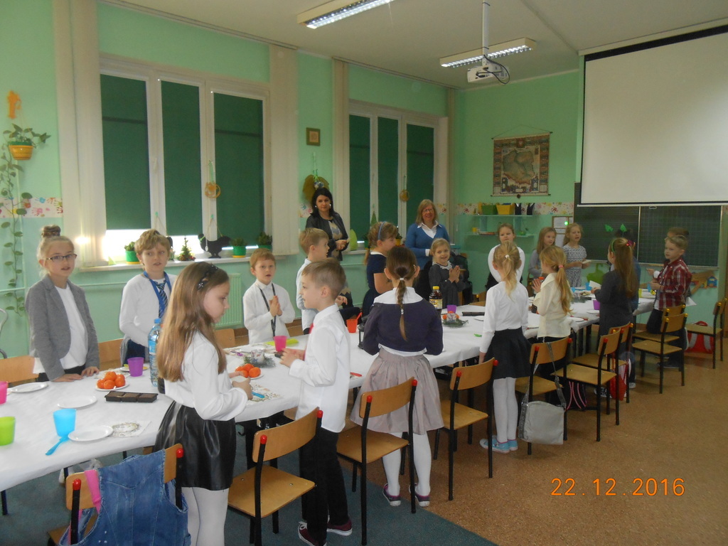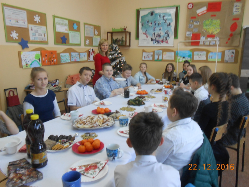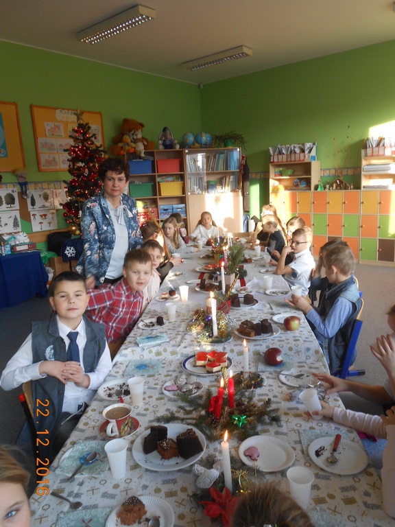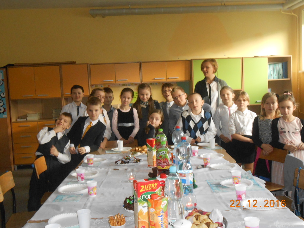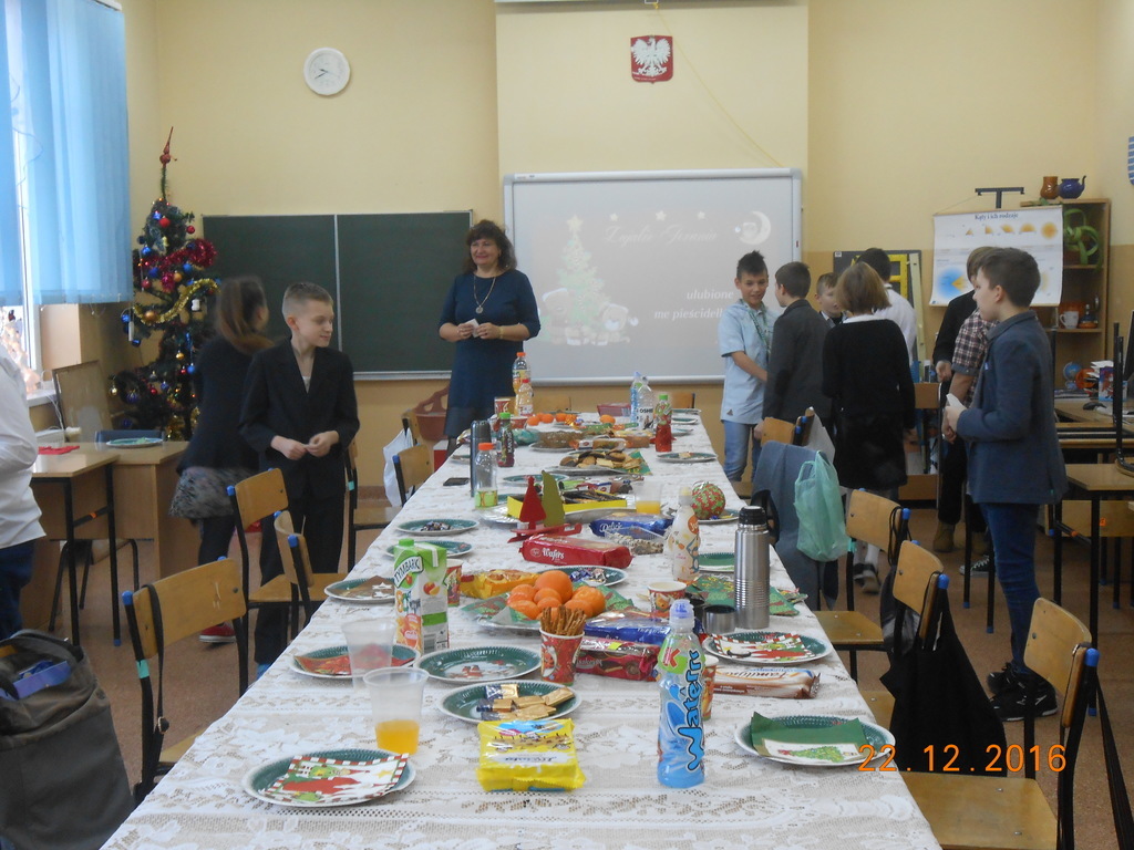 22 grudnia już od samego rana rozpoczęliśmy świętowanie. Po przygotowaniu izb lekcyjnych do klasowych wigilii,