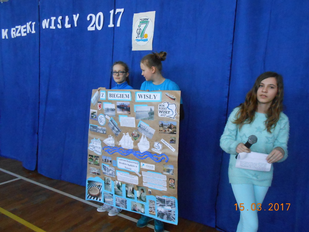 Obchody „Roku Rzeki Wisły – 2017” w SP 7 rozpoczęto zajęciami programowymi w dniu 15 marca 2017. Wszystkie klasy otrzymały tematy dotyczące – oczywiście - Wisły. Tematy były różnorodne i należało wykazać się pomysłowością i inwencją twórczą. Swoją pracę zaprezentowano na apelu. Klasy 0-I omówiły temat „Miasta nad Wisłą i ich zabytki”, klasy II przygotowały inscenizacje legend o Wiśle, klasy III - historię i współczesność tczewskich mostów, klasy IV zajęły się florą i fauną nadwiślańską, klasy V zaprezentowały Wisłę i jej dopływy, natomiast klasy VI poszukiwały nazw związanych z WISŁĄ na terenie Tczewa. Uczniowie przygotowali pomysłowe plakaty i zaprezentowali owoce swojej pracy na apelu. Klasy wykonywały także pracę plastyczną na temat „Tradycja i kultura kultywowana nad Wisłą”. Plakaty oraz prace plastyczne ozdobiły szkolny hol oraz bibliotekę.