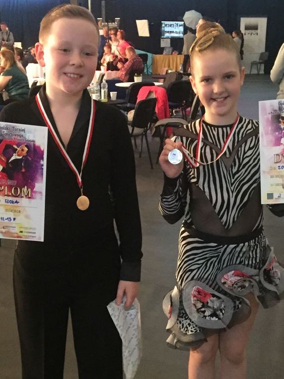 Zosia Bonk z kl.III B i Borys Szoła z kl. V B 14 maja na Ogólnopolskim Turnieju Tańca o Puchar Burmistrza Pruszcza Gdańskiego zdobyli srebrny medal w kategorii 12-13 F.