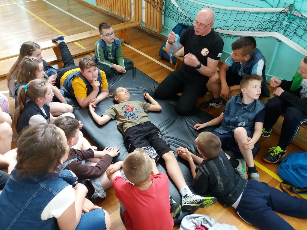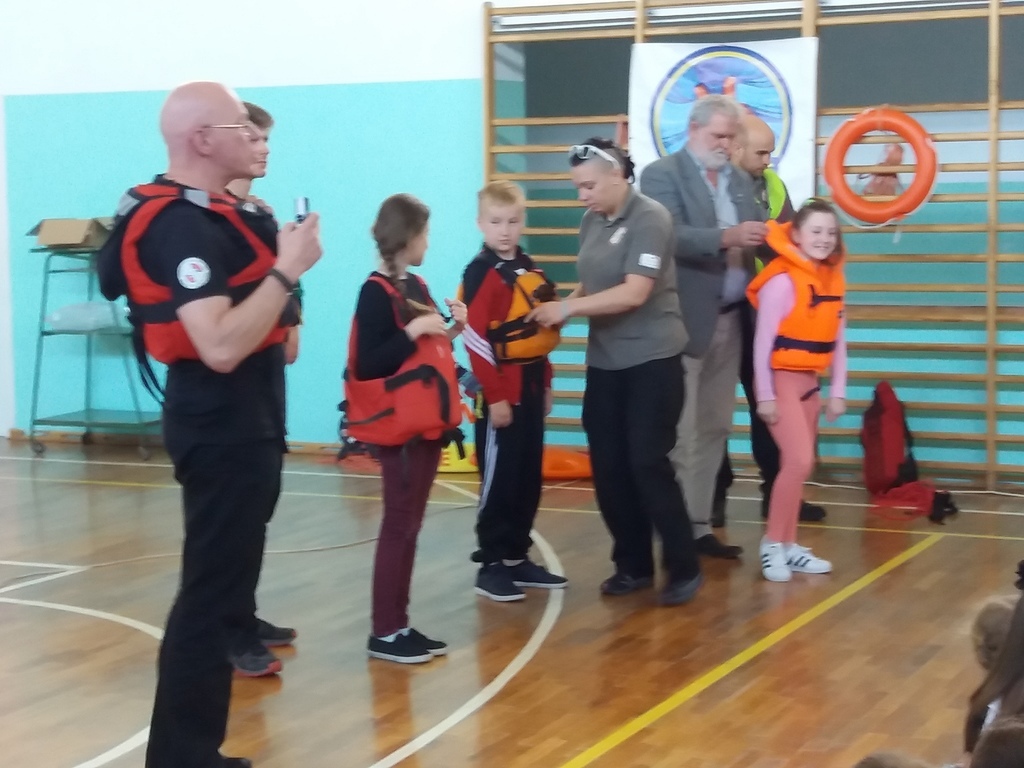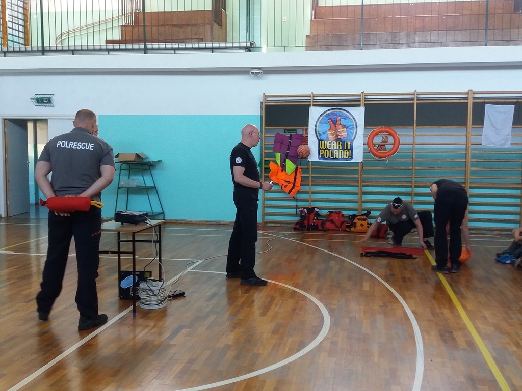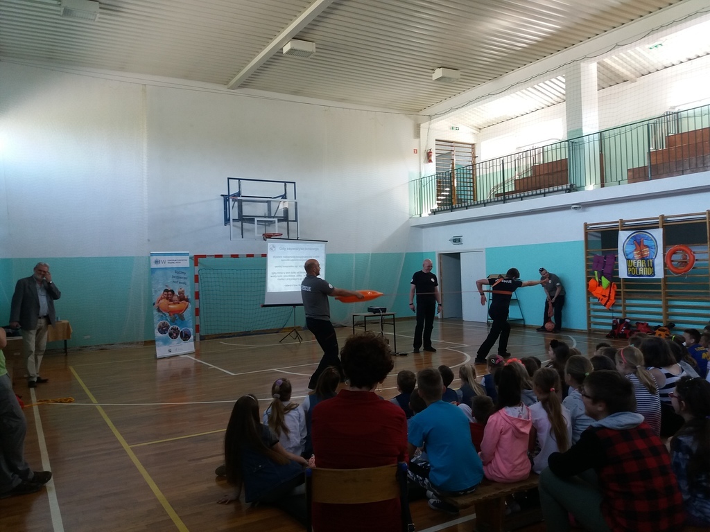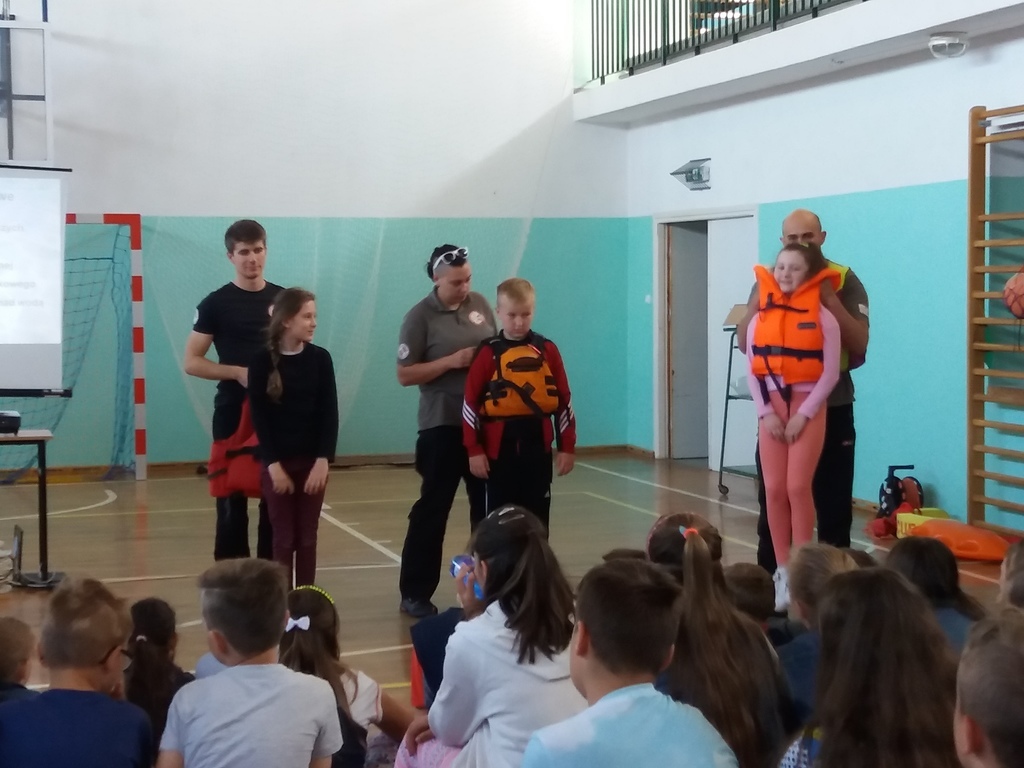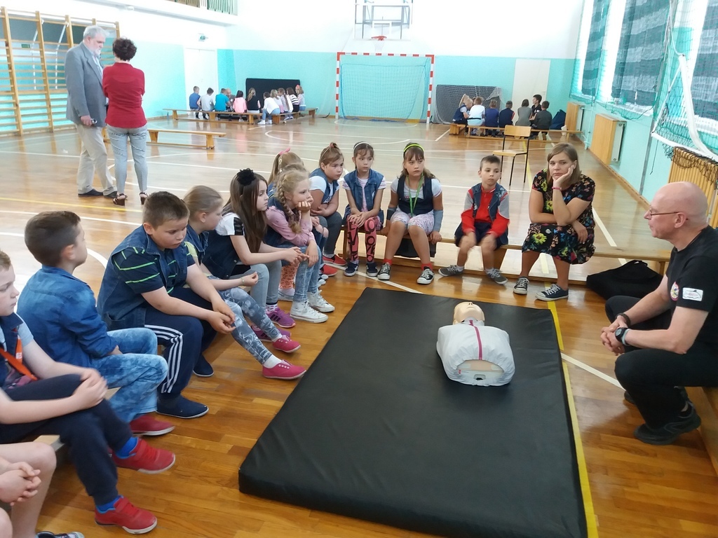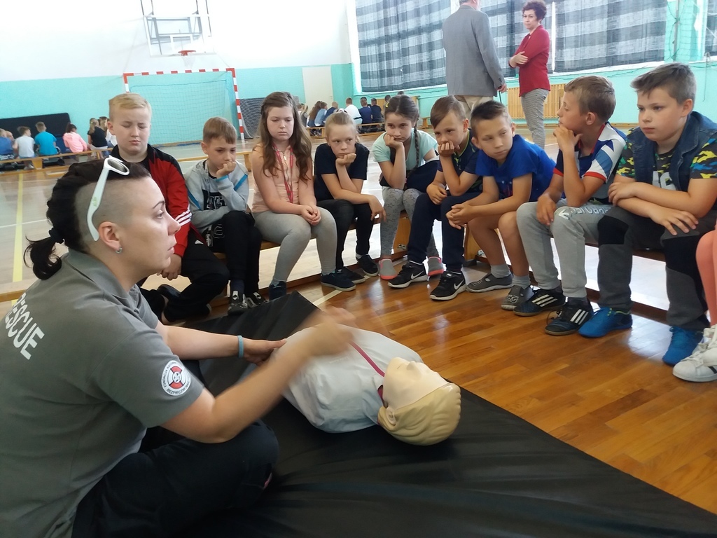 W ramach profilaktyki bezpieczeństwa oraz ogłoszonym przez Ministra "Rokiem Rzeki Wisły", pedagog szkolny nawiązał współpracę z Centrum Turystyki Wodnej PTTK w Warszwie. W związku z realizacją w 2017r. przez Centrum Turystyki Wodnej PTTK projektu, pn. "woda, dziecko, bezpieczeństwo, akcja informacyjno - edukacyjna", w ramach, którego przeprowadzone zostały zadania dotyczące szkolenia teoretycznego i praktycznego z zakresu nauki udzielania pierwszej pomocy przed medycznej. W zajęciach udział wzięli uczniowie klas III - VI. Podczas zajęć wymieniono i omówiono zagrożenia nad i na wodzie, pokazanie przy pomocy prezentacji multimedialnej wyposażenia kąpielisk strzeżonych i elementów ich wyposażenia, praktyczny pokaz ich użycia. Ćwiczenia odbywały sie z udziałem uczniów. Następnie uczyli się resuscytacji krążeniowo - oddechowej przez zawodowych instruktorów i ratowników medycznych. Wszyscy uczniowie na koniec otrzymali certyfikaty ukończenia szkolenia oraz przydatne prezenty m.in. kolorowanki, czepki, apteczki, gazetki informacyjne.