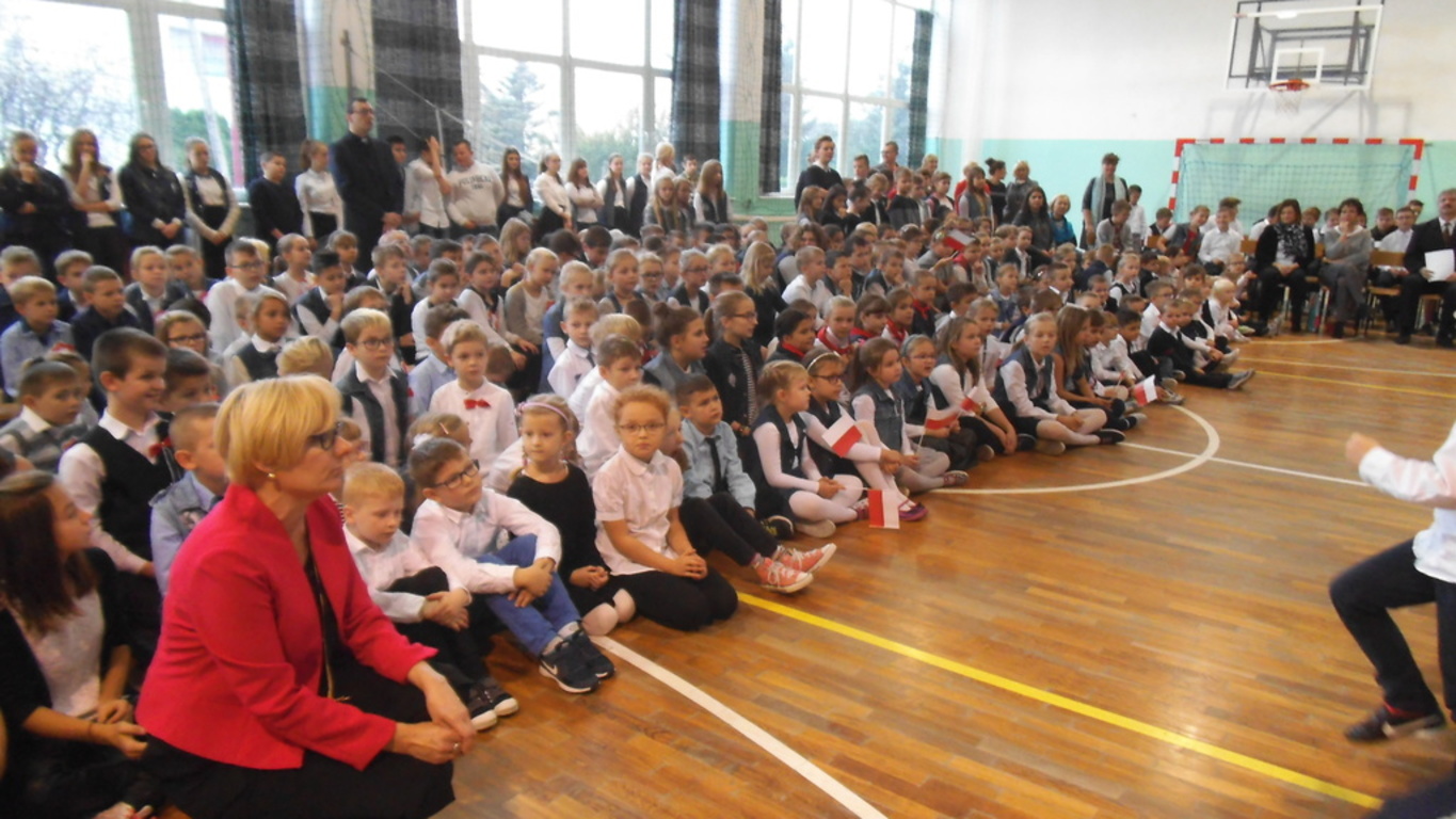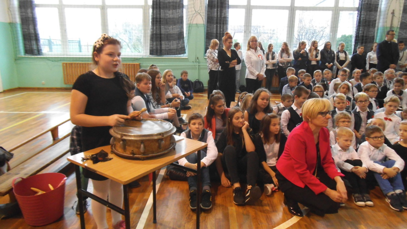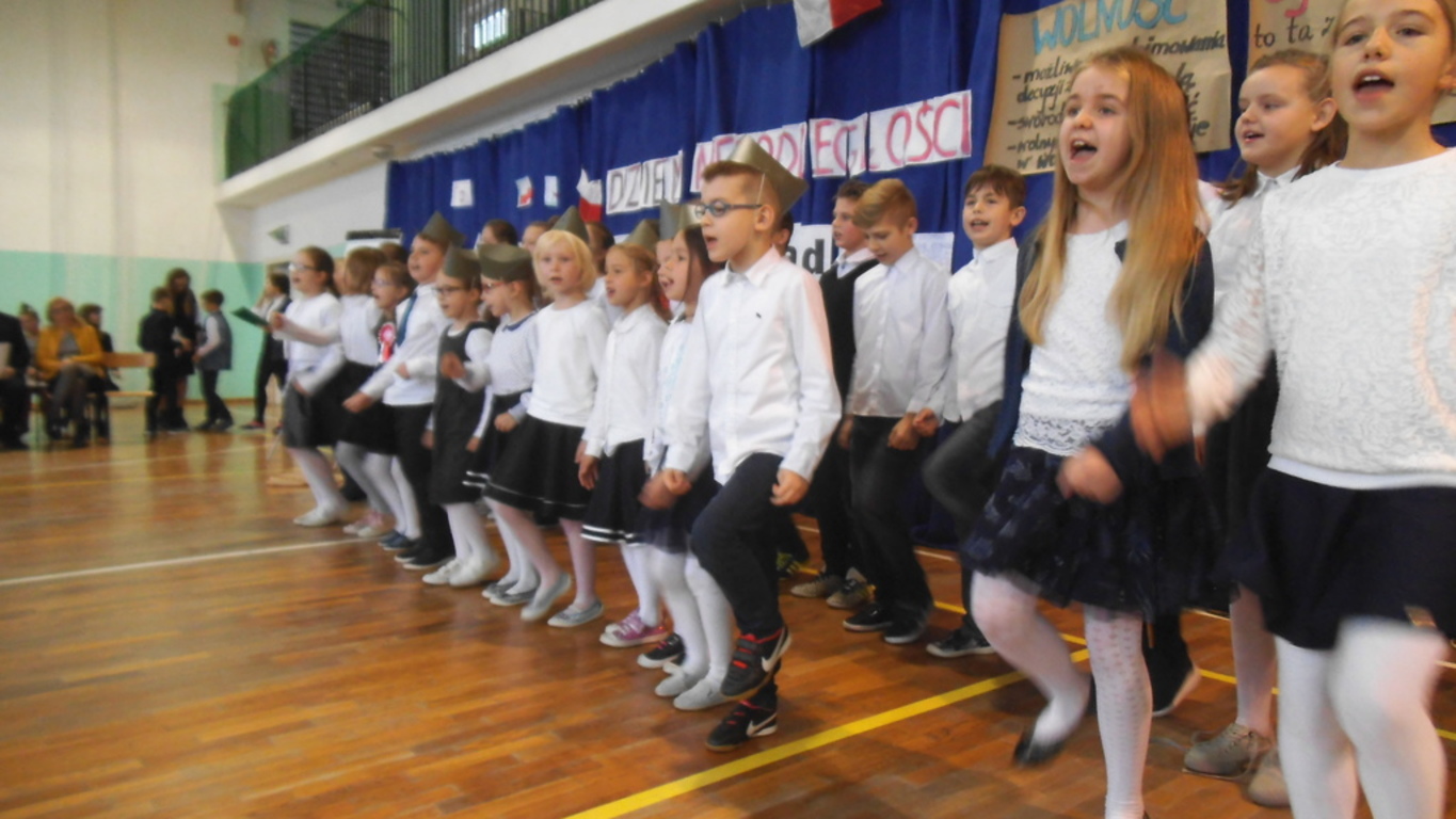 p. Wioletty Kowalewskiej, p. Anny Poniewskiej oraz p. B. Rokity. Młodzi aktorzy zaprezentowali wizję dawnego i współczesnego patriotyzmu, przedstawili także historię naszej Ojczyzny. Uroczystość wzbogacił występ chóru patriotycznego prowadzonego przez panią Wiolettę Kowalewską. Warto nadmienić, iż o dekorację zadbała klasa IVA wraz z wychowawcą p. Magdaleną Fraszkiewicz.