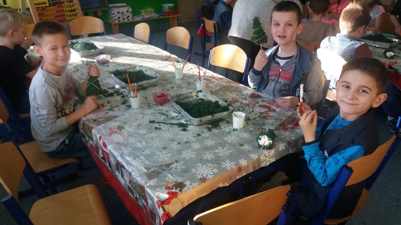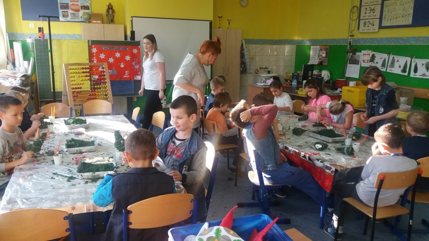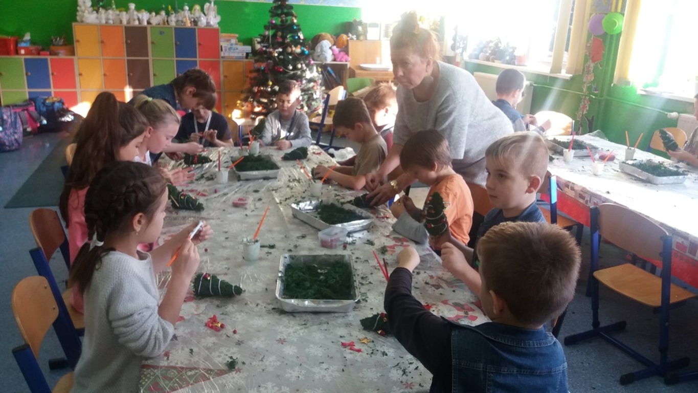 W zeszły piątek, tj. 8 grudnia uczniowie klas: oddziału przedszkolnego, II a, oraz III a, b, c udział wzięli w magicznych, świątecznych warsztatach. Dzieci wykonywały piękne ozdoby m.in. choinki z mchu oraz świece żelowe. Jak przyznali uczniowie, będą to wspaniałe prezenty dla ich bliskich.