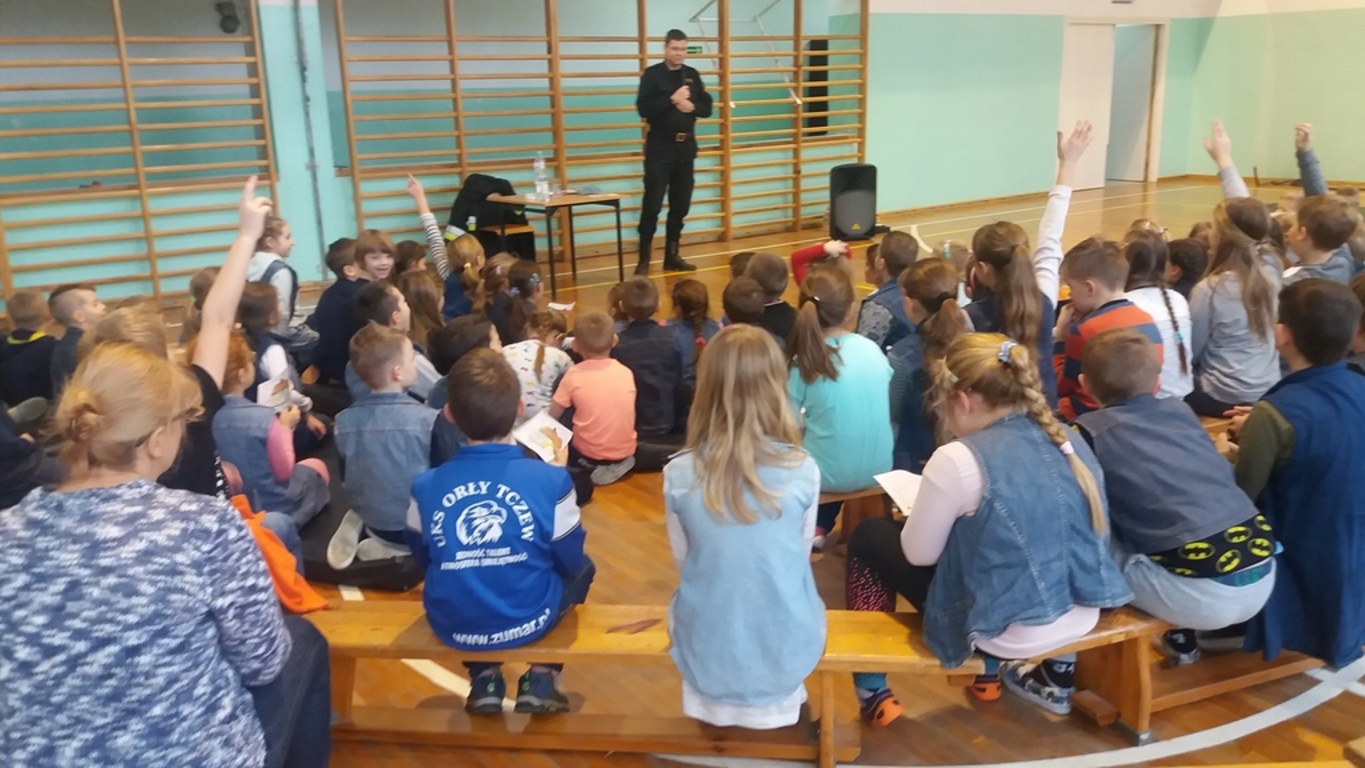 Dnia 21 grudnia w naszej szkole dla wszystkich uczniów klas OP - VII odbył się apel dot. "Czad - niewidzialny zabójca". Pedagog wraz z Dyrekcją zwrócili się z prośbą do Komendy Powiatowej Państwowej Straży Pożarnej w Tczewie o przeprowadzenie pogadanek na temat czadu i jego szkodliwości. Prośbę motywowaliśmy zlokalizowaniem naszej szkoły, która usytuowana jest na osiedlu domków jednorodzinnych. Rozmowę przeprowadził Pan st. kpt. Mariusz Stawicki. Mamy nadzieję, że rozmowy z dziećmi zmotywują rodziców do zwrócenia szczególnej uwagi na to, czym palą w piecach, zadbają o szczelność przewodów kominowych a także regularnie dokonają przeglądu pieców.