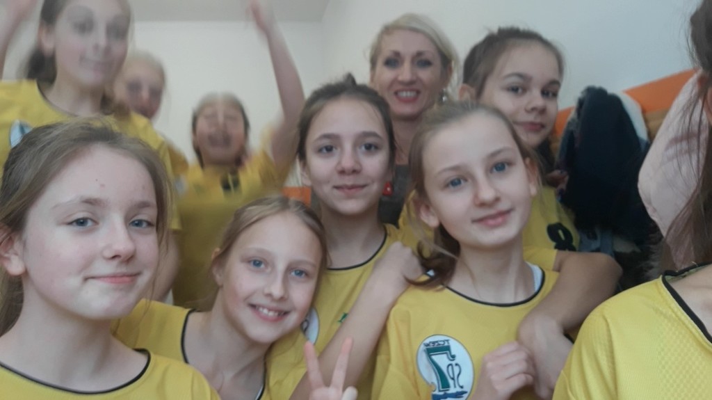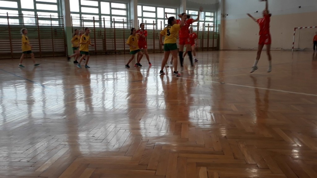 Dziewczęta trenują piłkę ręczną „pod okiem” pani Basi Jasińskiej.