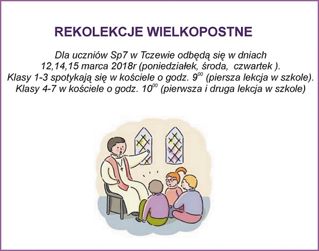 Rekolekje Wielkopostne odbędą się w dniach 12, 14 i 15 marca (poniedziałek, środa, czwartek) 2018 roku.