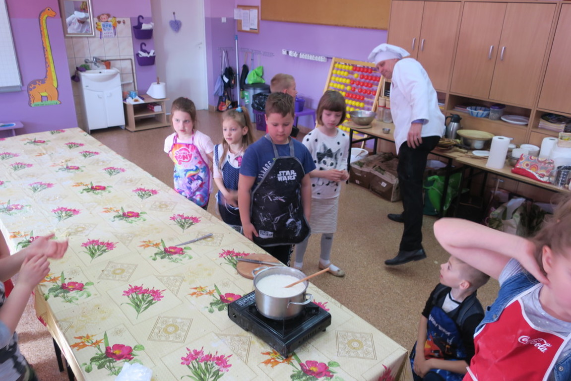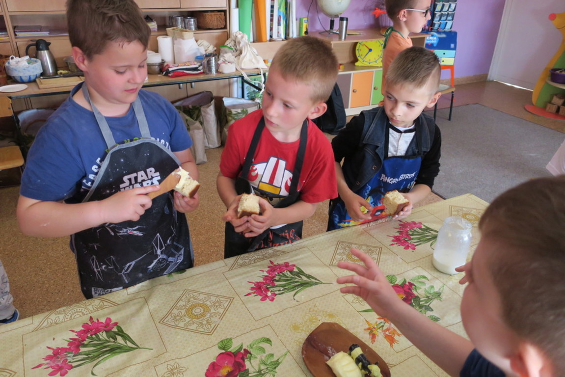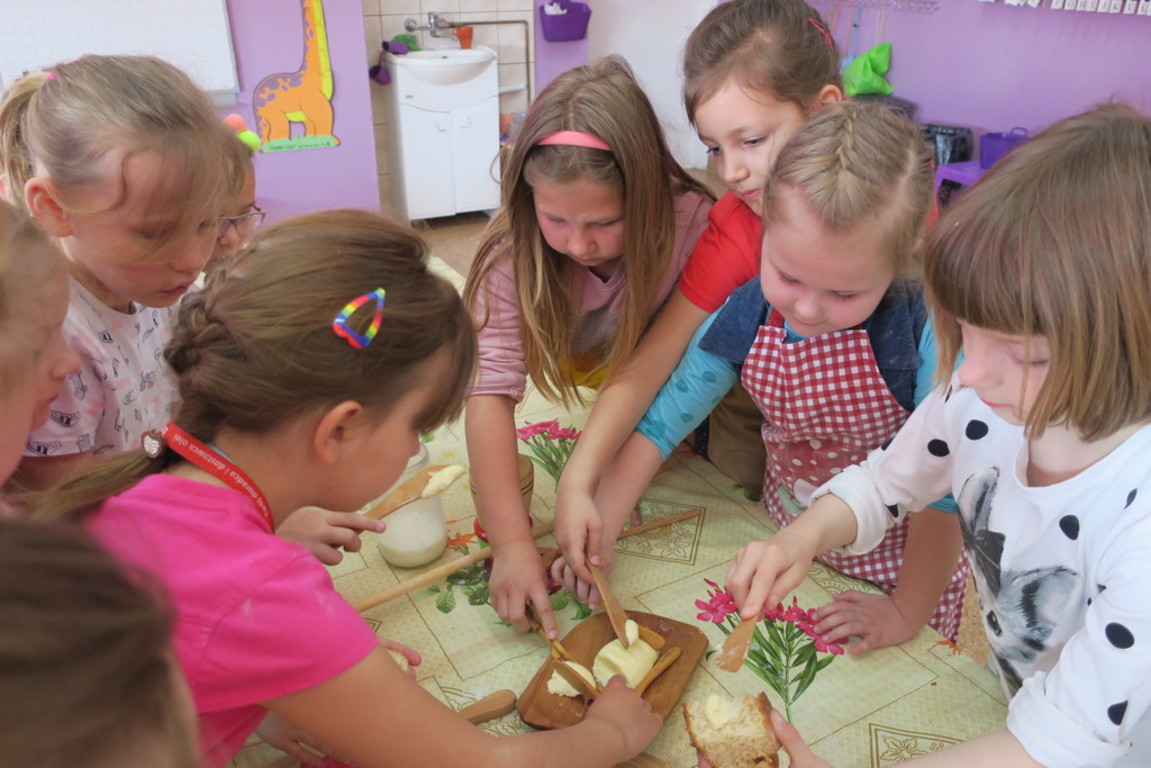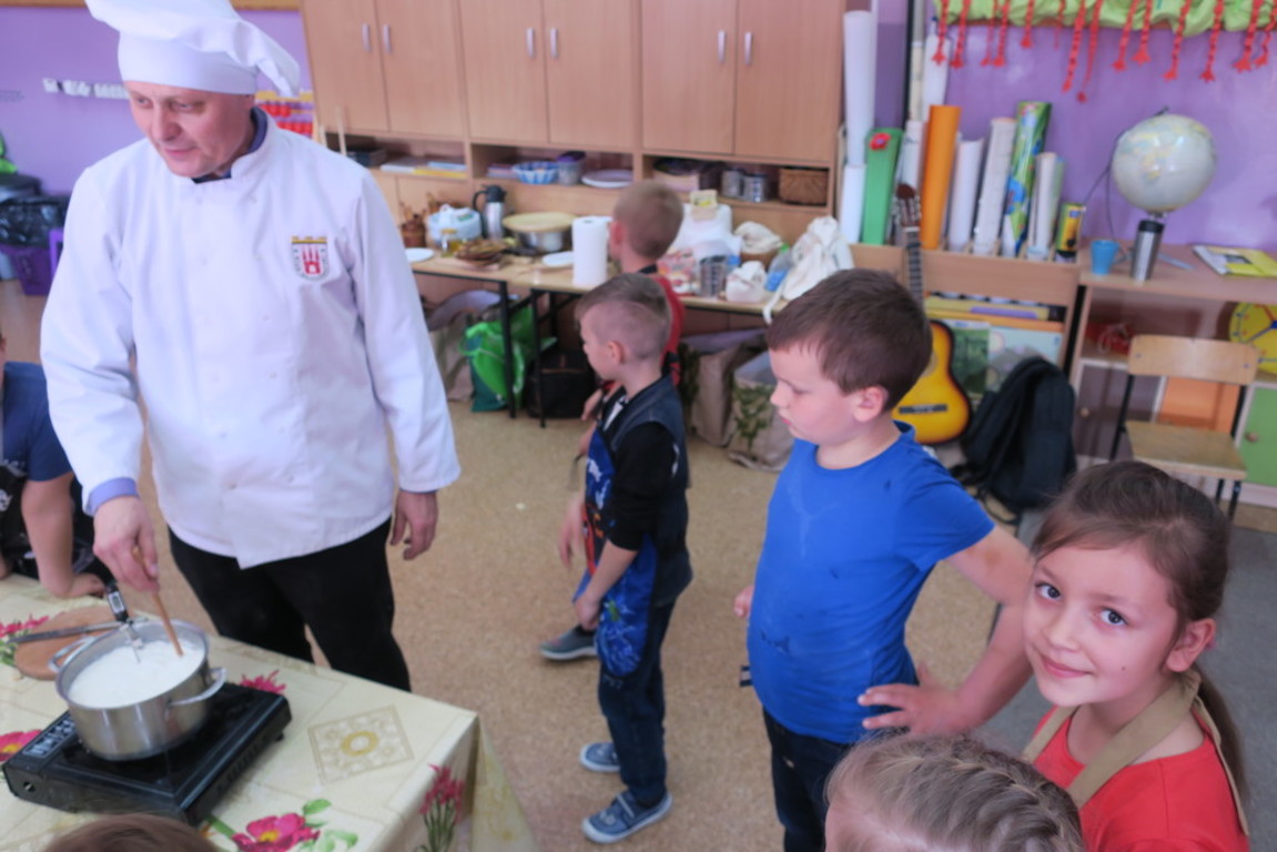 W naszej szkole odbył się pokaz kuchni tradycyjnej, dzieci z klas 0-III wytwarzały sery, masło
