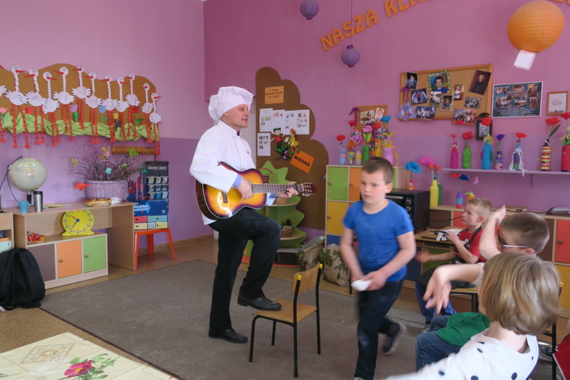 Dzieci śpiewały piosenki przy akompaniamencie gitary.