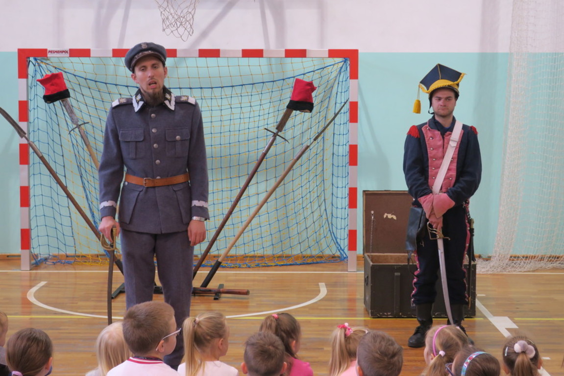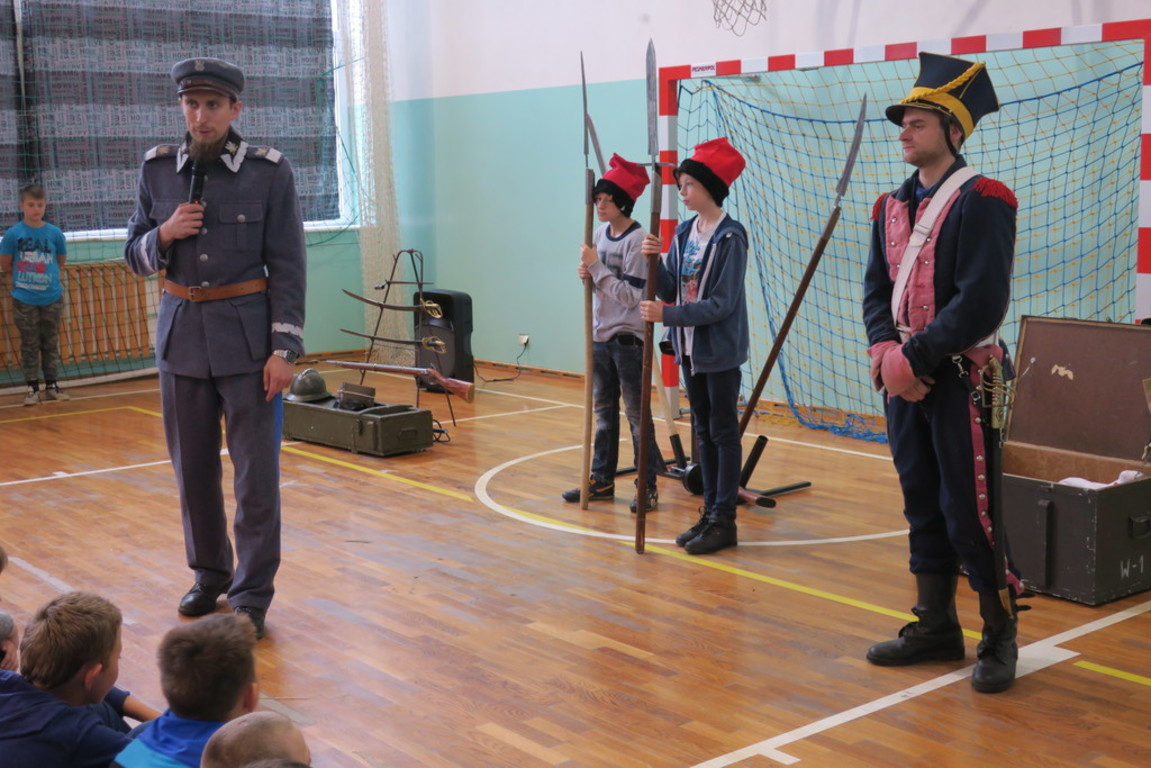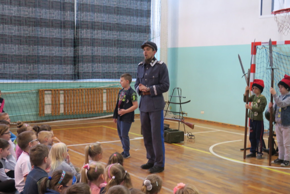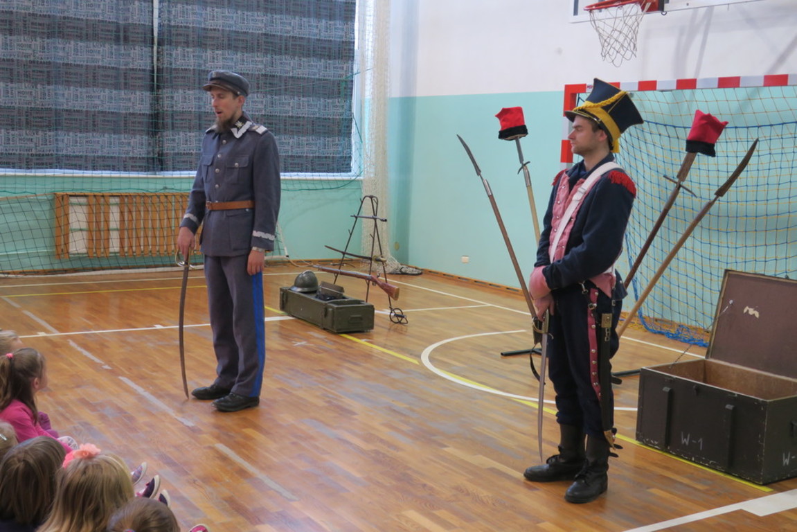 Obejrzeliśmy między innymi wesołą lekcję historii, stroje z epoki, kolekcję replik broni, ekwipunek i uzbrojenie, omówiono powstania narodowe oraz rolę i legendę marszałka Józefa Piłsudskiego i legionów.