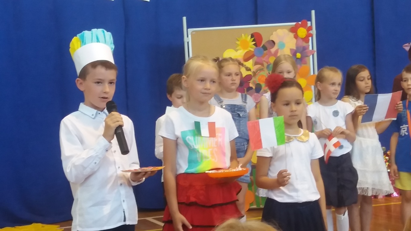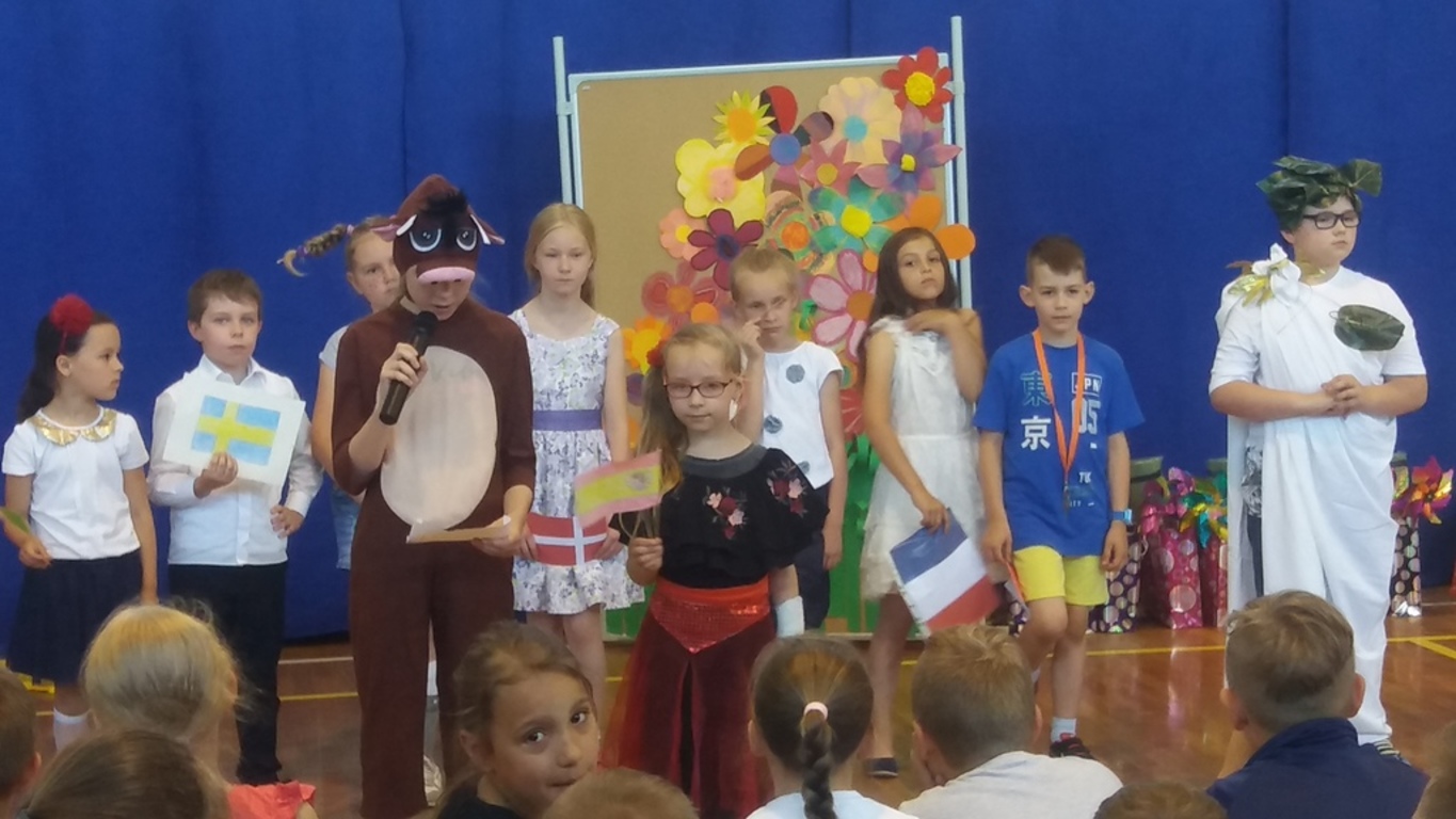 Konkurs został poprzedzony częścią artystyczną, w której uczniowie SP nr 7 zaprosili wszystkich gości i uczestników konkursu, w kolorową podróż. Przebrani w stroje ulubionych baśniowych bohaterów prezentowali ciekawe informacje na temat wybranych krajów Unii Europejskiej.