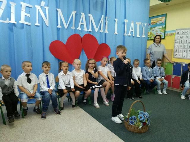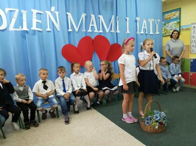Dnia 5 czerwca 2018 r. dzieci z Oddziału Przedszkolnego zaprosiły swoje Mamy i Tatusiów na przedstawienie z okazji ich święta. Dzień Matki 26 maj, Dzień Taty 23 czerwca. Dzieci recytowały wiersze, śpiewały piosenki, wręczyły upominki.