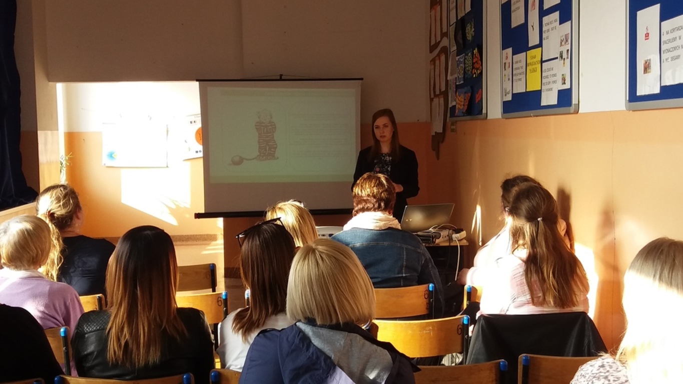 W obecnym roku szkolnym zostało przeprowadzone szkolenie dla wszystkich chętnych rodziców oraz nauczycieli z zakresu cyberproblemów dzieci i młodzieży. Szkolenie przeprowadziła zewnętrzna firma z Gdańska. Podczas spotkania mozna było dowiedzieć się o przyczynach uzależnienia, najpopularniejszych programach i aplikacjach, z których korzystają dzieci, krótko i długotrwałe skutki uzależnienia od telefonu i komputera, formy pomocy dziecku uzależnionemu, prawa i obowiązki rodzica.