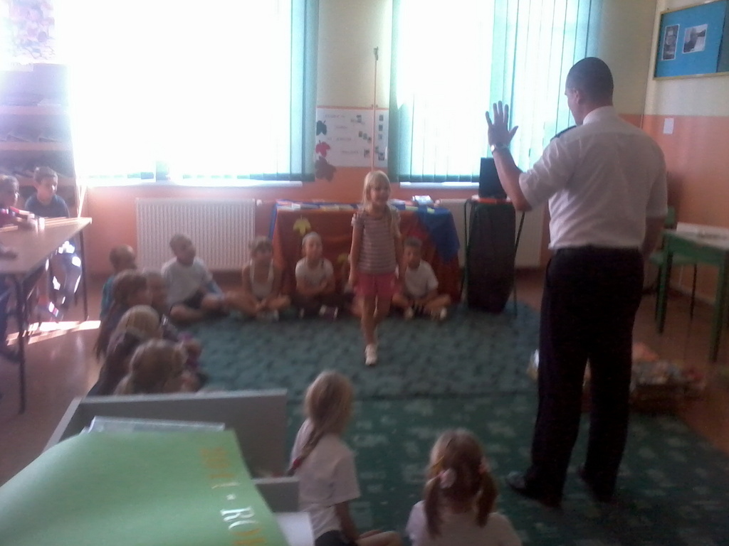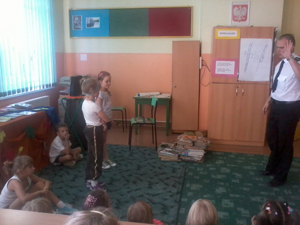 Pod takim hasłem dnia 21 września w naszej szkole odbyło się spotkanie z funkcjonariuszem Komendy Powiatowej Policji w Tczewie, aspirantem panem Dawidem Krajewskim. Rozmowa prewencyjno - edukacyjna skierowana została do uczniów klas pierwszych naszej szkoły. Celem spotkania były rozmowy na temat poprawy stanu bezpieczeństwa dzieci, kształtowanie prawidłowych nawyków komunikacyjnych oraz przygotowanie uczniów, szczególnie klas I do świadomego i odpowiedzialnego korzystania z dróg. Policjant podczas spotkania podał przykłady zagrożeń z jakimi mogą się spotkać podczas drogi do i ze szkoły. Dzieci zostały zaznajomione z podstawowymi zasadami bezpieczeństwa. Na zakończenie każdy uczeń otrzymał miłą niespodziankę w postaci odblaskowych zwierzątek.