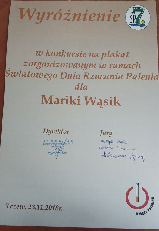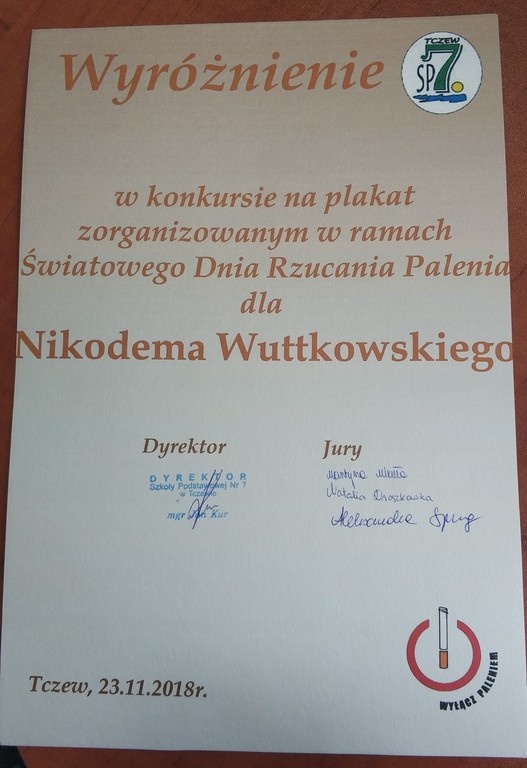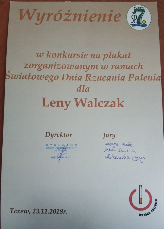 Dziś został rozsztrzygnięty konkurs plastyczny z okazji Światowego Dnia Rzucania Palenia.