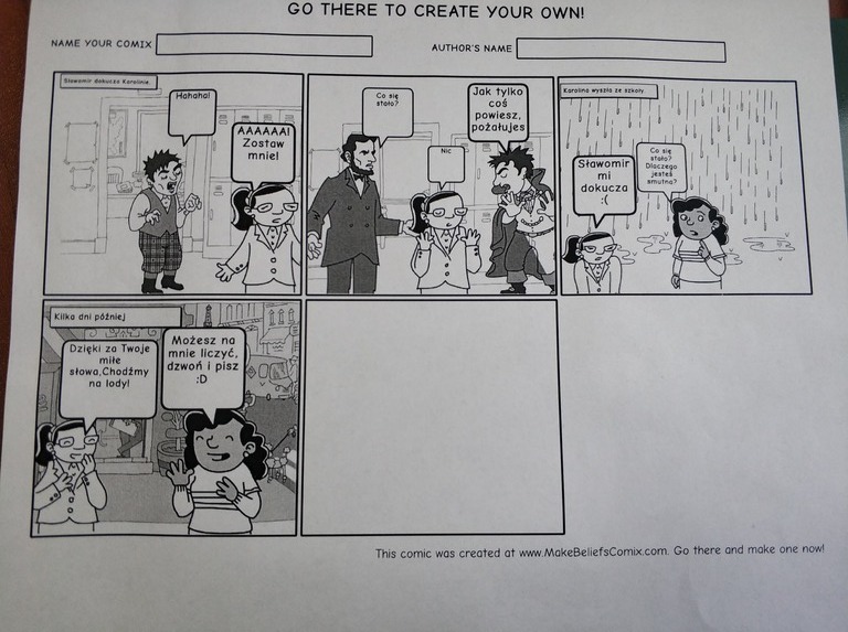 Został rozstrzygnięty konkurs na komiks dotyczący życzliwości. Nagrodzoną pracę wykonały: Mia Pomorska, Marta Bawół i Kameila Kępka.