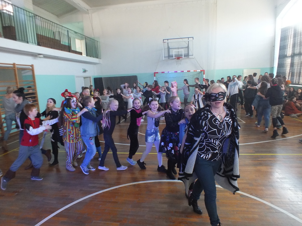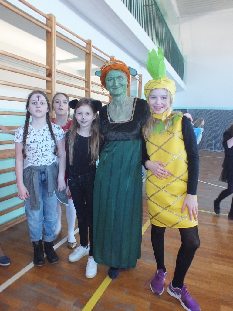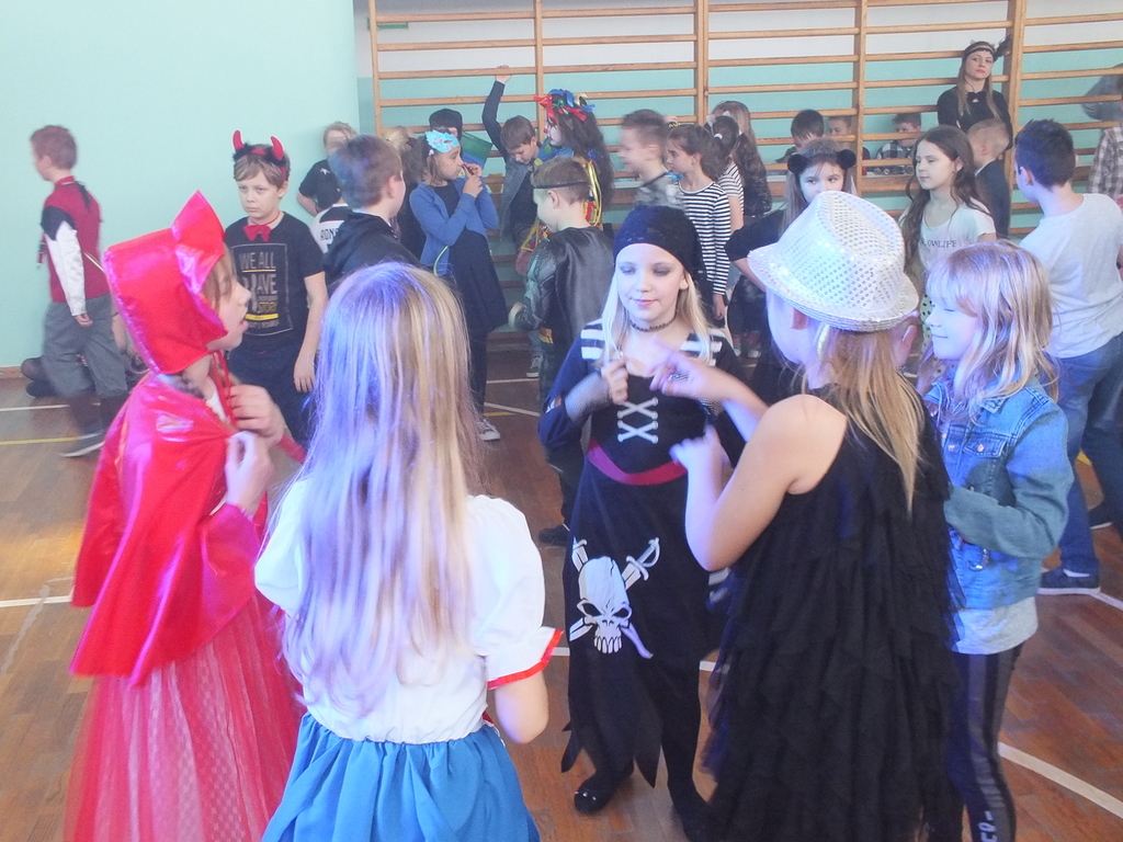 Większość uczniów miała przepiękne stroje bajkowe i nie tylko. Przebrani byli także niektórzy nauczyciele. Stroje prezentowano w klasach i na sali gimnastycznej.