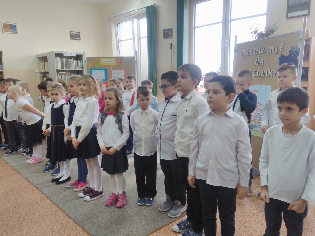 Po kilku lekcjach bibliotecznych, na których to pierwszaki poznali wszystkie regulaminy obowiązujące w bibliotece oraz wszelkie zasady zachowania w bibliotekach i w czytelniach, nauczyli się szanować i kochać książki, przyszedł czas na PASOWANIE.