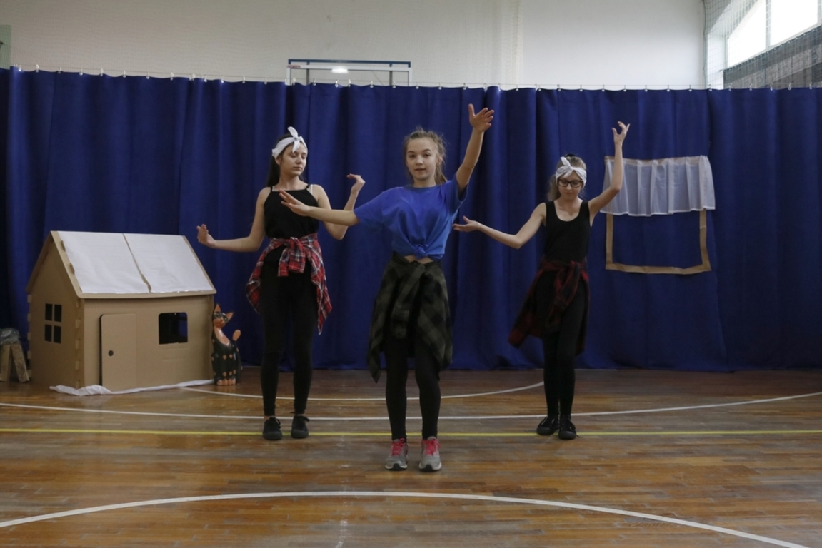 Pokaz tańca dziewcząt z kl. VII – Julia Podjacka, Weronika Olszewska, Iga Wiatr