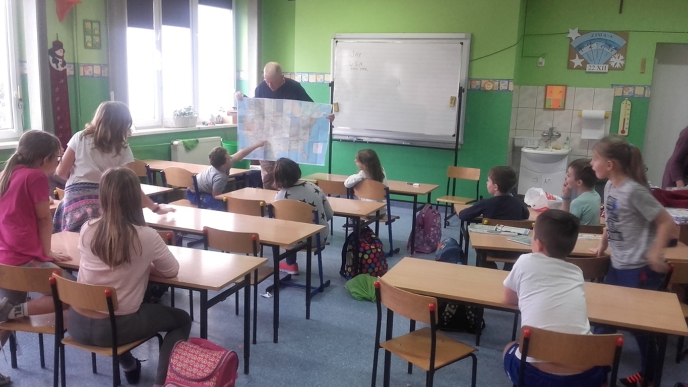 W poniedziałek 21.01.2019 r. na języku angielskim spotkaliśmy się z Jay’em Cohen’em. Jay jest znajomym pani Ani Poniewskiej i pochodzi z Nowego Yorku. Na spotkaniu dowiedzieliśmy się dużo o jego rodzinie, dalekich podróżach (na przykład do Indii) i samych Stanach. Dzięki znajomości języka angielskiego, byliśmy w stanie swobodnie rozmawiać z naszym gościem. Spotkanie z tym miłym człowiekiem będziemy wspominać bardzo długo. Szkoda, że Ameryka jest tak daleko i Jay nie może częściej nas odwiedzać.