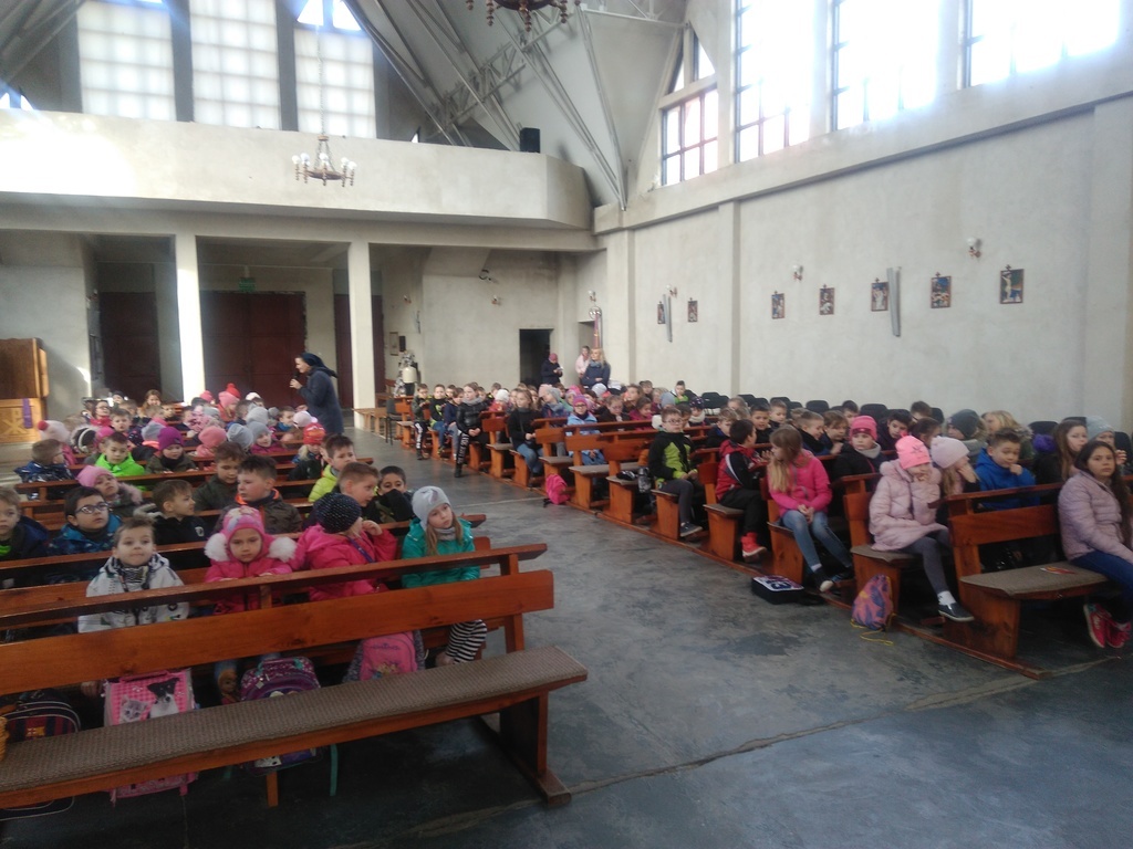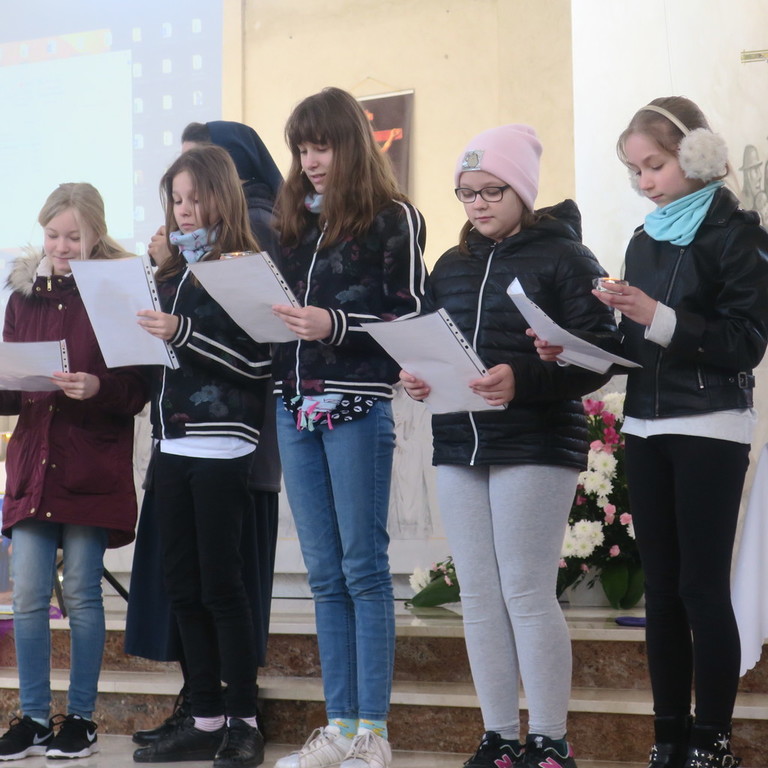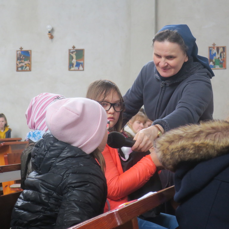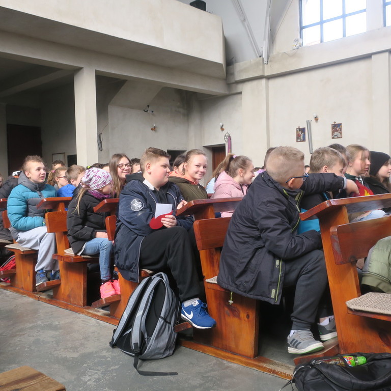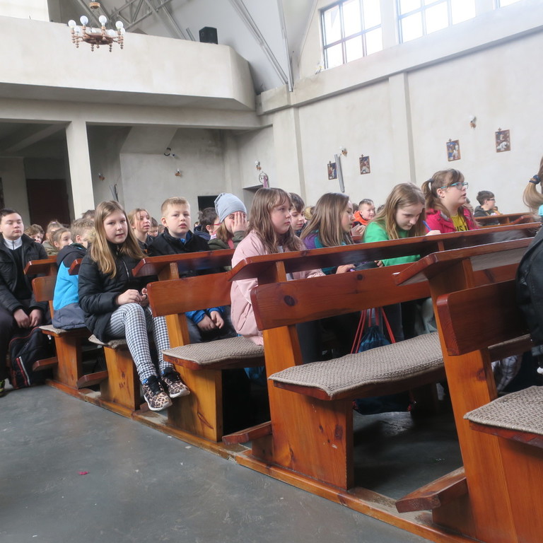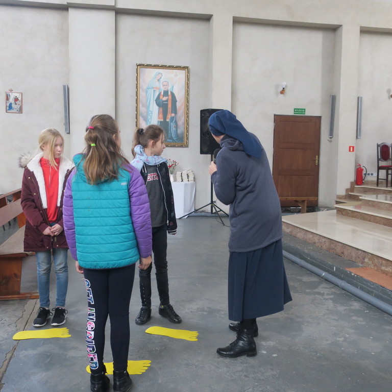 Po dwóch lub trzech pierwszych lekcjach pod opieką wychowawców szliśmy do kościoła na rekolekcje, które prowadziła w tym roku siostra Cecylia Bronowska ze Zgromadzenia Sióstr Szarytek.