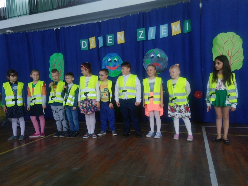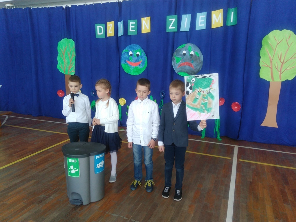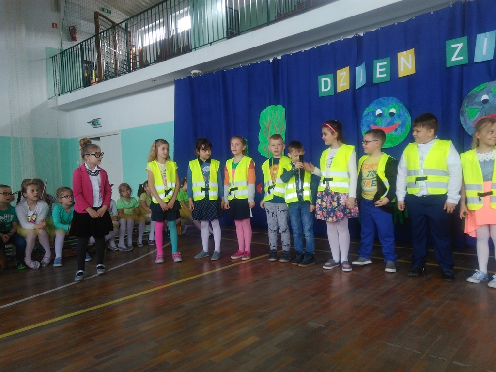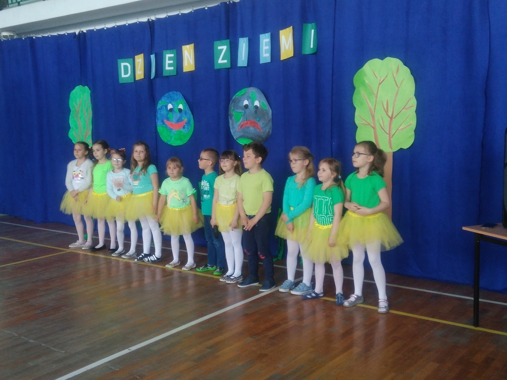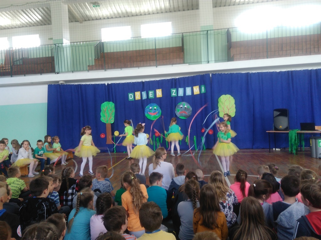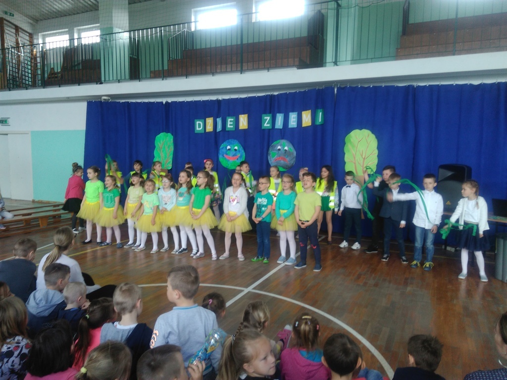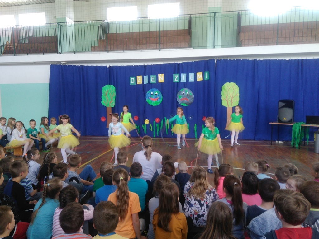 Dnia 14 maja 2019 r. dzieci z klas pierwszych i oddziałów przedszkolnych zaprosiły klasy II-IV na przedstawienie o tematyce ekologicznej, gdyż 22 kwietnia 2019 r. obchodzono Dzień Ziemi. Dzieci śpiewały piosenki o ziemi, tańczyły, mówiły wiersze oraz wystawiły przedstawienie pt. „Kto ma olej w głowie?”