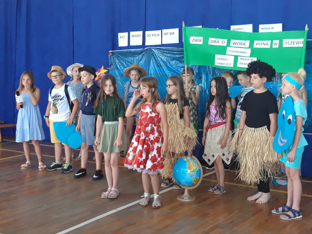 Na początku odbył się apel z wręczeniem nagród książkowych dla najlepszych uczniów klas I – III w roku szkolnym 2018/2019 oraz przedstawienie pt. ”Bez wody do picia nie ma życia”