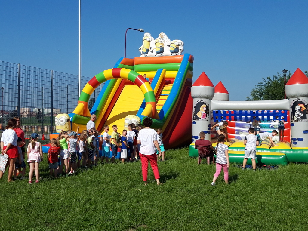 Następnie wszyscy uczniowie bawili się na boisku szkolnym na wszelkiego rodzaju dmuchańcach, biorąc udział w zawodach sportowych, loterii fantowej i przepysznym poczęstunku.