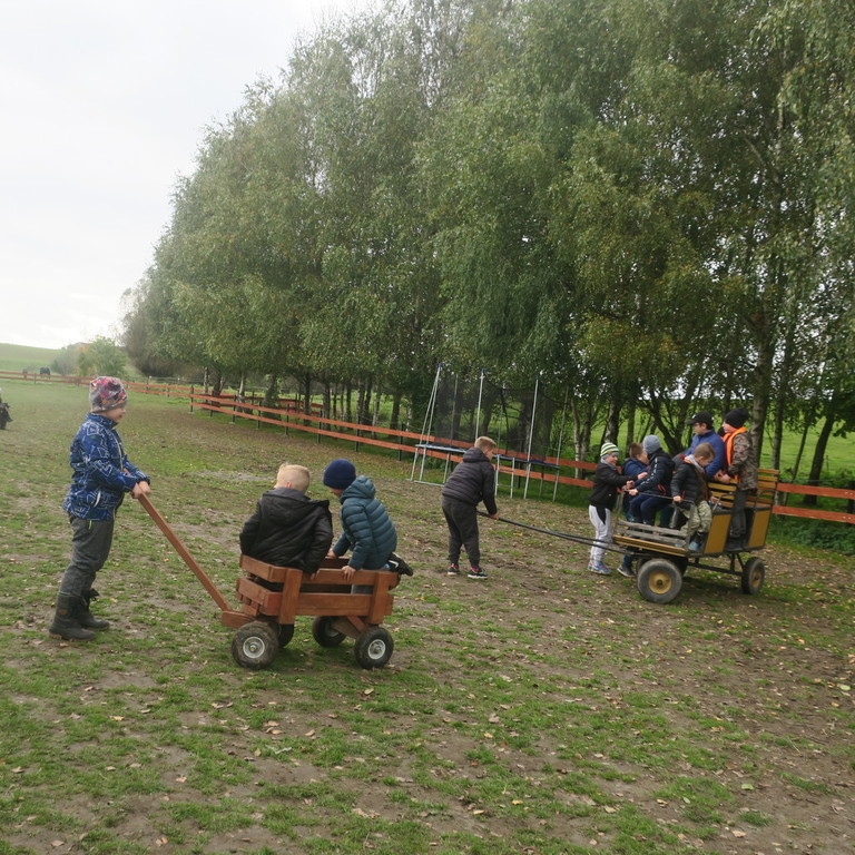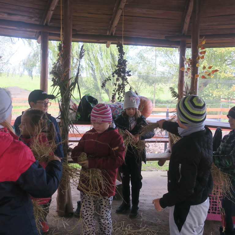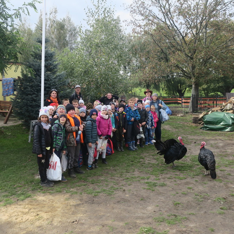 Zagroda edukacyjna pod nazwą „Inny świat” zaoferowała nam wiele jesiennych ciekawostek, jakie można spotkać w gospodarstwie rolnym. Poznaliśmy wiele zwierząt gospodarskich: konie, osła, świnie, kozy, indyki, kury - różnych ras, króliki, kaczki oraz oczywiście koty i psy.
