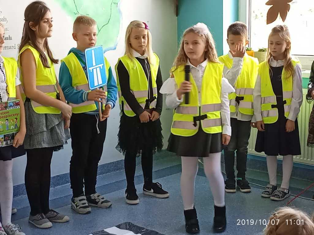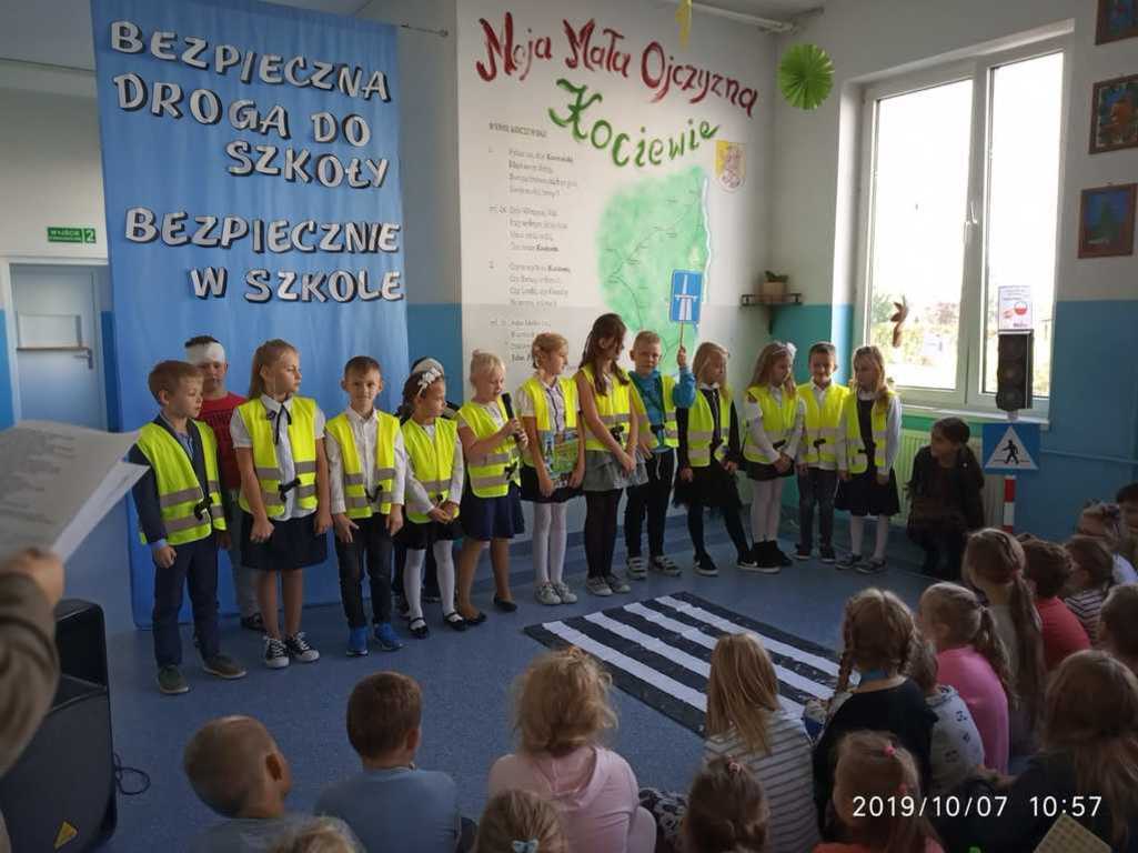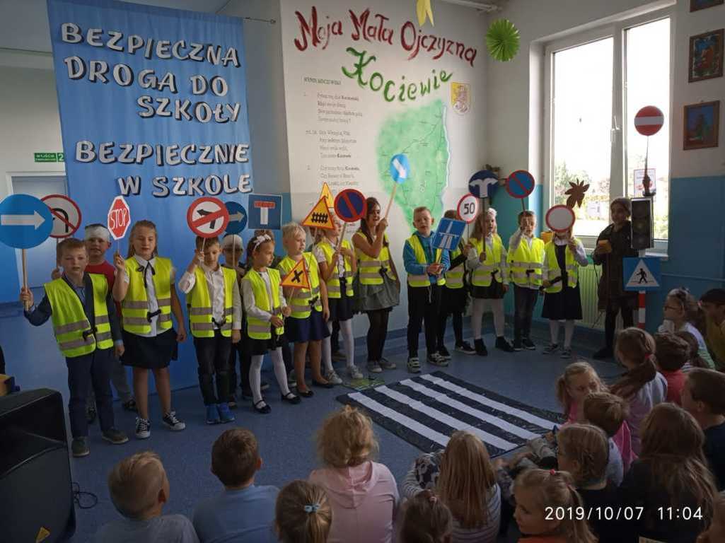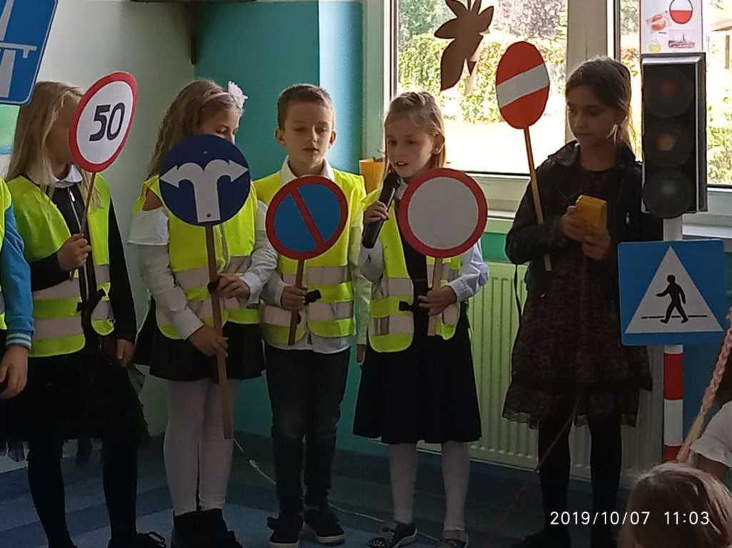Dzieci uczyły swoje koleżanki i kolegów właściwego zachowania się w ruchu drogowym, zapoznały z nazwami podstawowych znaków drogowych, przypomniały i utrwaliły zasady bezpiecznego poruszania się po drogach, mówiły o bezpiecznym zachowaniu się w szkole i w domu. Wysłuchaliśmy wiersze, scenki i piosenki.