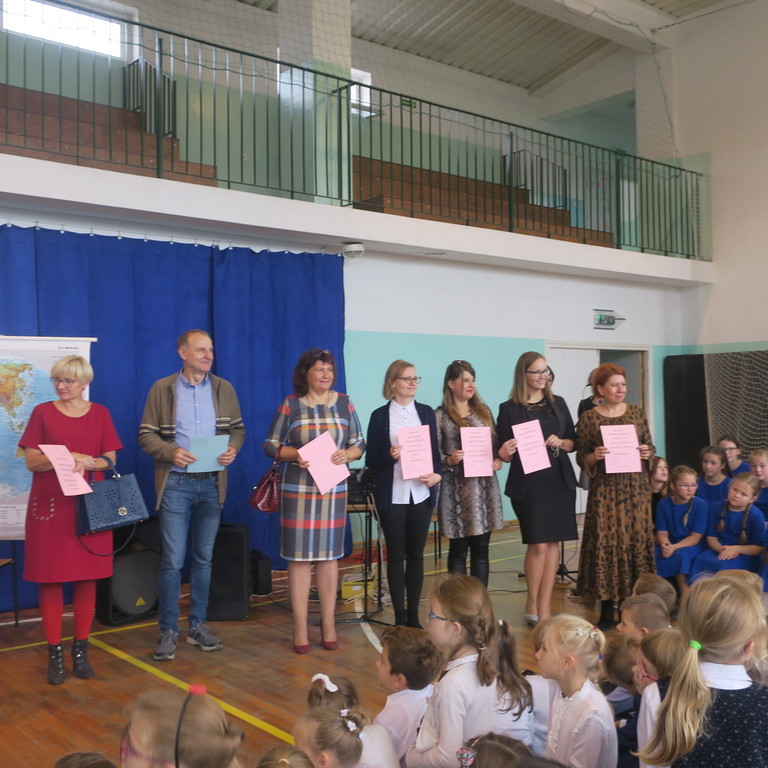 Na zakończenie apelu Samorząd Uczniowski wręczył dyplomy wyróżnionym w Konkursie na NAJ... NAUCZYCIELA. Wygrali: p. Wioletta Kowalewska, p. Sławomir Deja, p. Aurelia Czerwińska, p. Magdalena Fraszkiewicz, p. Karolina Lubiszewska, p. Anna Poniewska, p. Roma Warnke, p. Cezary Wójcik. Wszyscy nauczyciele zostali poczęstowani cukierkami.