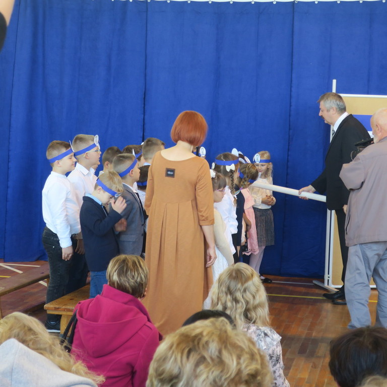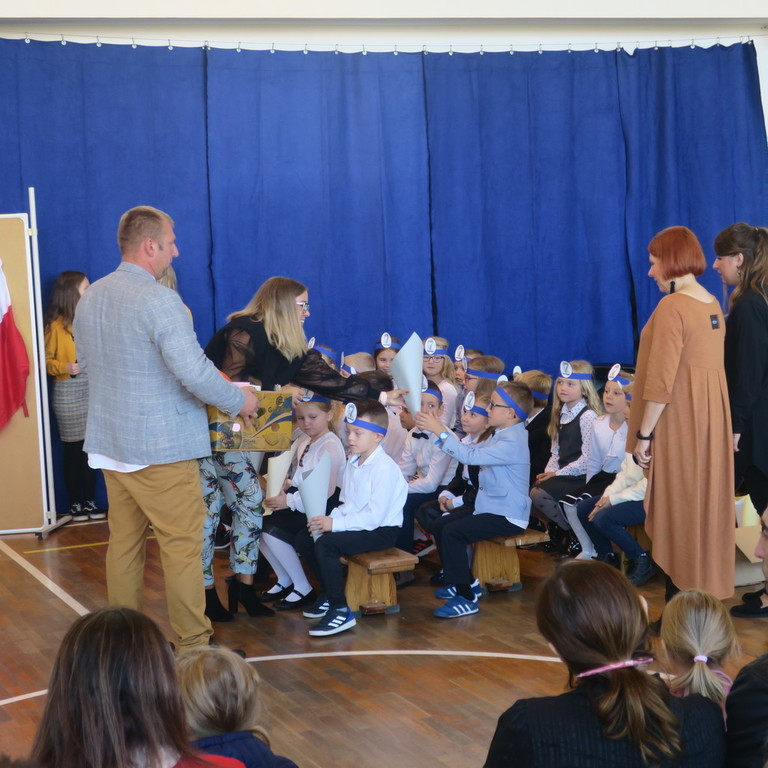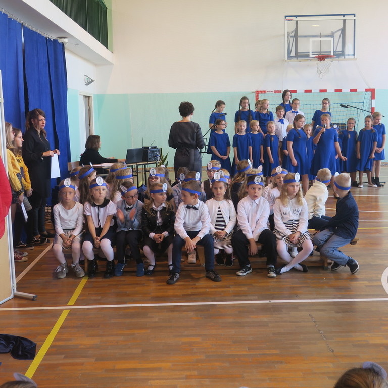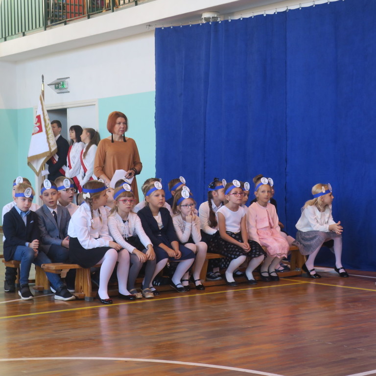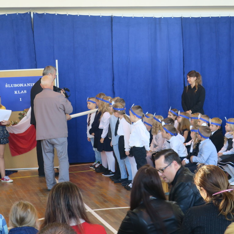 Na uroczystość przybyli – odświętnie ubrani uczniowie klas I wraz z rodzicami, Dyrekcja Szkoły oraz nauczyciele.