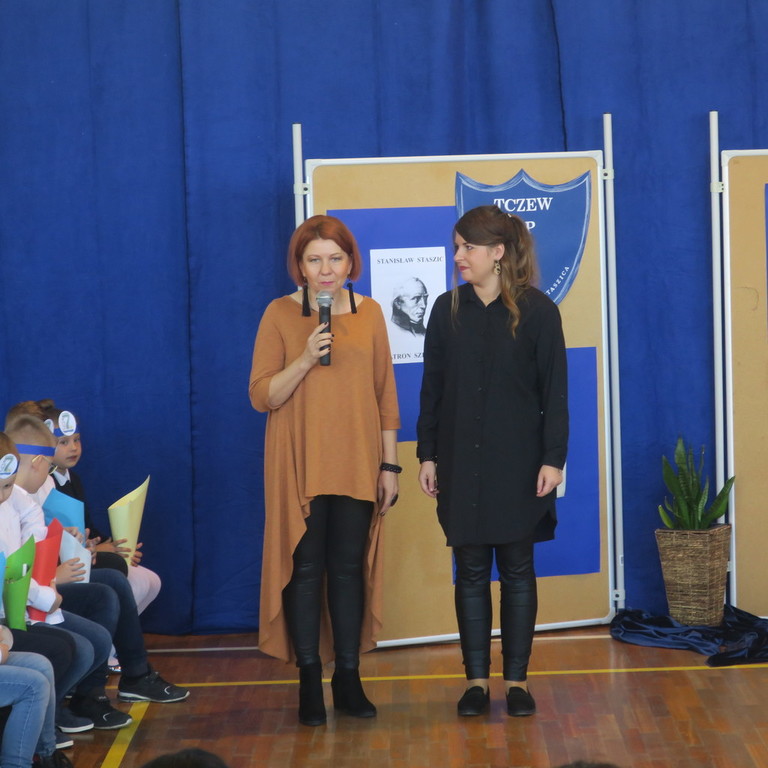 Pierwszaki - pod okiem swoich pań, tj Pani Romy Warnke i Pani Karoliny Lubiszewskiej - przygotowały przedstawienie, na którym zaprezentowały taniec, wiersze i piosenki.