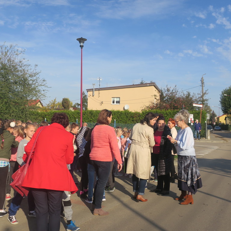 Cała akcja w wyznaczonym czasie przebiegła bardzo sprawnie i zgodnie z zasadami postępowania w czasie niebezpieczeństw. Po usłyszeniu alarmu uczniowie, nauczyciele oraz pracownicy opuścili budynek szkoły i przeszli na ul. Spółdzielczą obok placu zabaw. Celem próbnego alarmu jest to, aby uczestnicy akcji doświadczyli najistotniejszych wzorców, gdzie priorytetem jest brak paniki, szybkość i zwinność w opuszczeniu terenu zagrożenia oraz wspólne pomaganie sobie. Na uwagę zasługuje fakt, iż uczniowie, nauczyciele, a także wszyscy pracownicy administracji i obsługi zachowują środki bezpieczeństwa, doskonale znają drogi ewakuacyjne, a także bardzo szybko i sprawnie stawiają się na miejscu zbiórki. Podkreślamy, iż takie alarmy próbne to bardzo ważne kwestie, które przygotowują nas do zachowania odpowiedniego postępowania podczas prawdziwej ewakuacji na wypadek pożaru lub innego zagrożenia. Przeprowadzona akcja była potwierdzeniem, że wszyscy wiedzą, jak się zachować w takich sytuacjach.