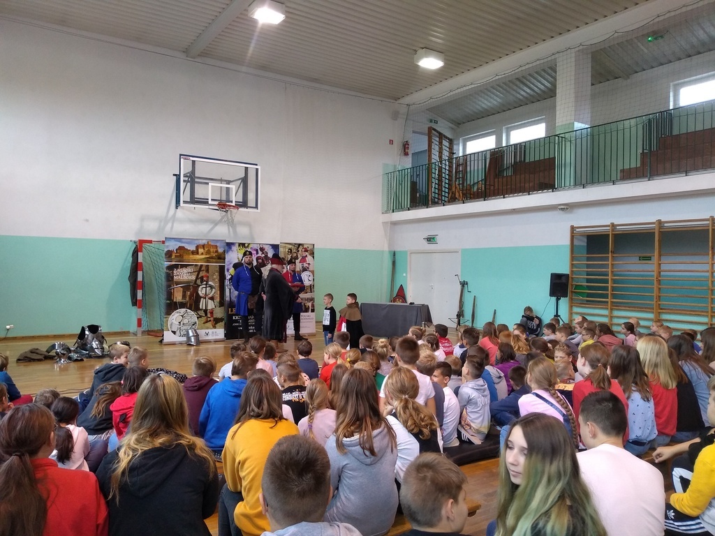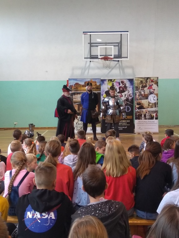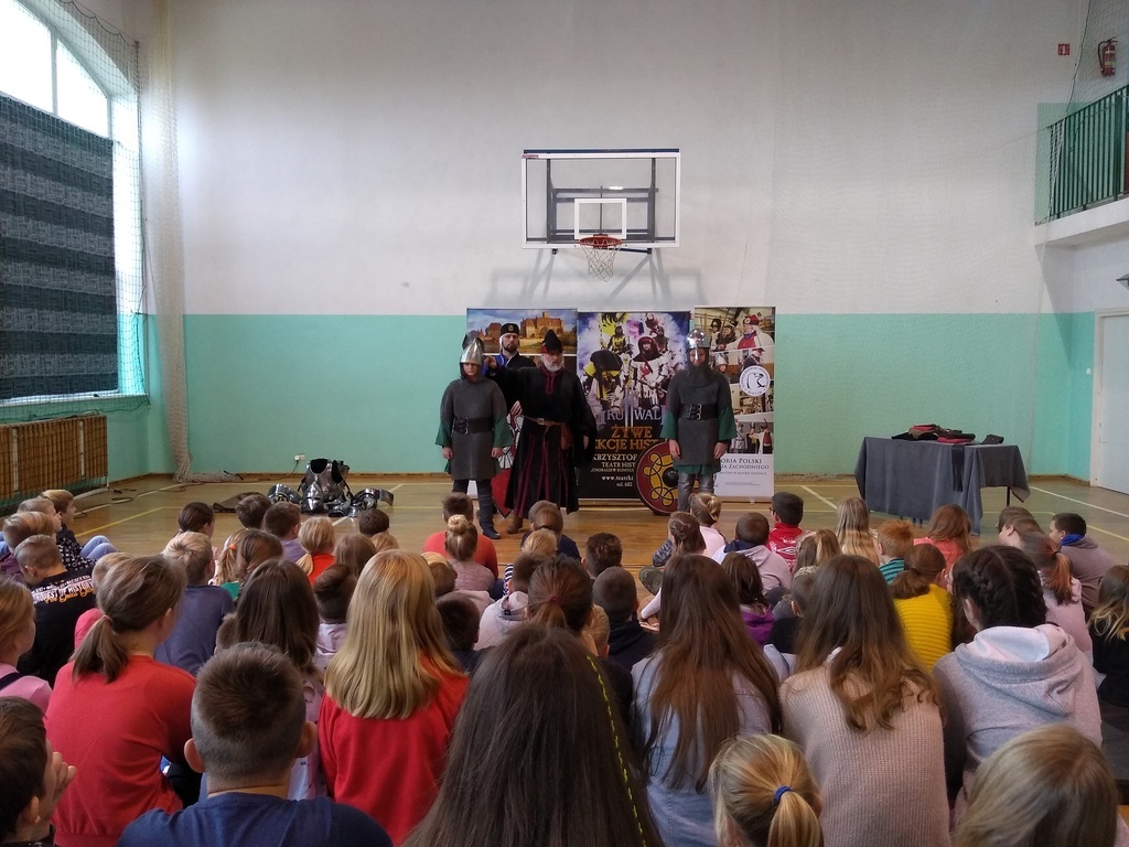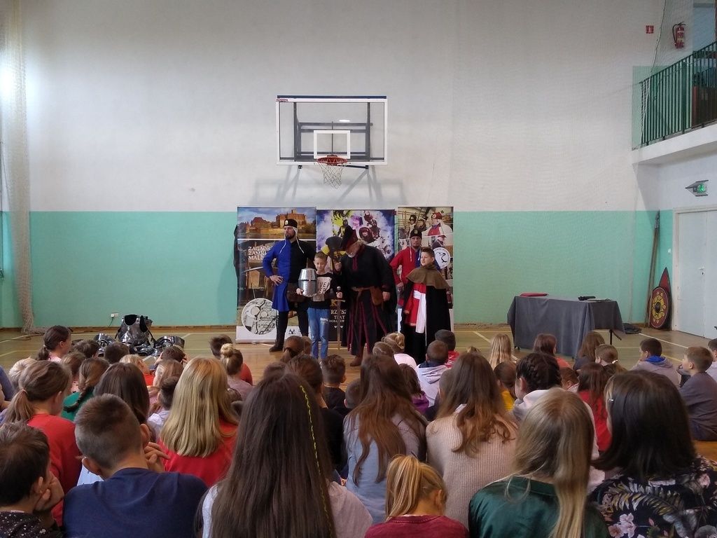 Pokaz był przeznaczony dla klas IV-VII. Tym razem dzieci poznawały tajemnice średniowiecznych rycerzy. Nasi wychowankowie mogli m.in. sprawdzić, jak ciężkie było uzbrojenie rycerza, jak przebiegało pasowanie i czy strzelanie z kuszy było takie proste.
