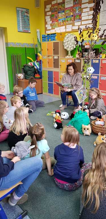 Klasa II a zorganizowała w naszej szkole Dzień Głośnego Czytania, na który zaprosiła klasy pierwsze. Dzieci z klas pierwszych mogły zapoznać się z bohaterami, przeniosły się w świat słodziaków słuchając opowiadania „Królestwo”, zapoznały się z edukacją ekologiczną, zobaczyły, w jaki sposób można zrobić zabawki z elementów nadających się do recyklingu, a następnie własnoręcznie mogły posadzić prawdziwe drzewo, które będzie przypominało o dbaniu o najbliższe otoczenie i uwrażliwi na rolę drzew w środowisku.