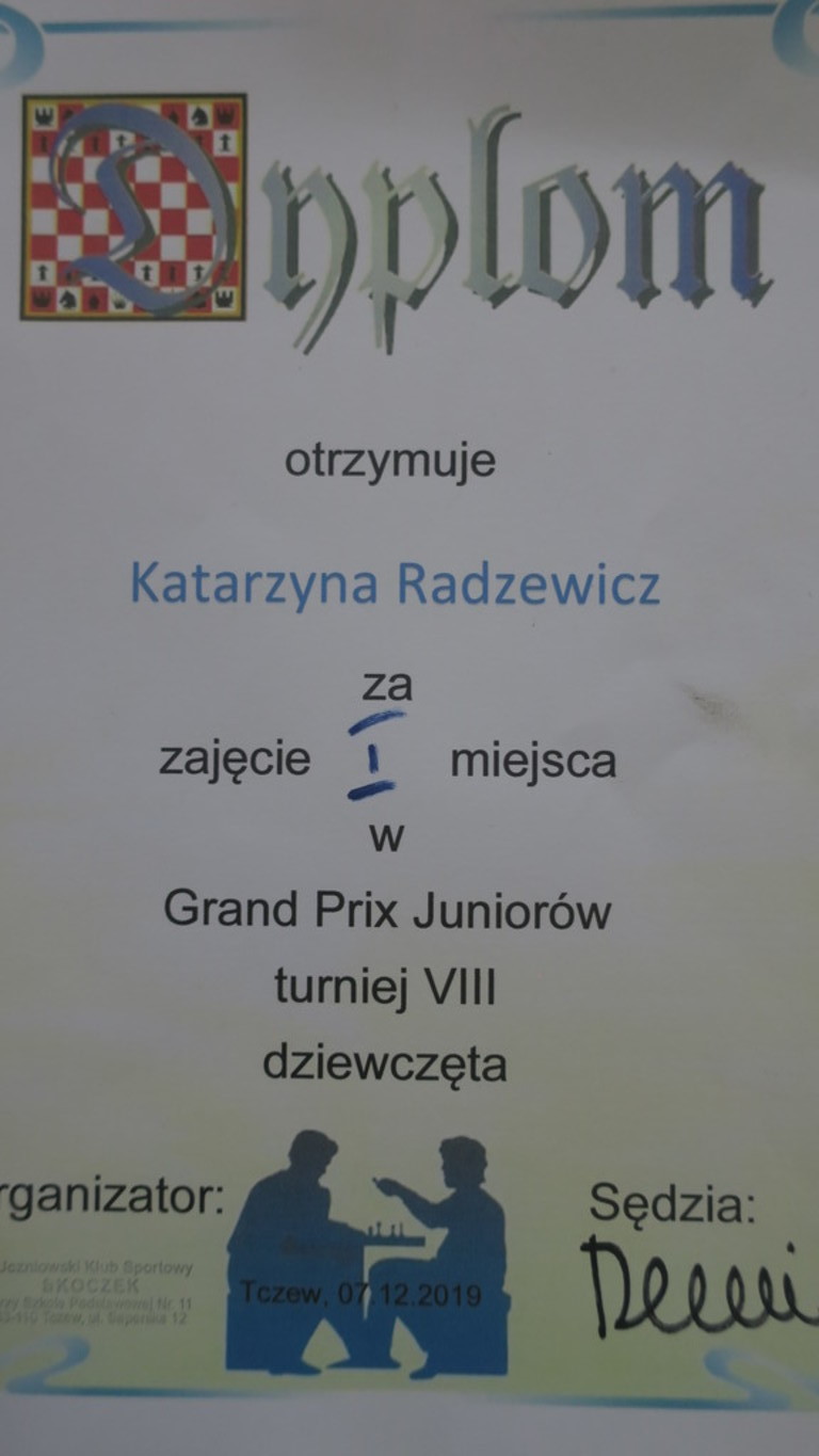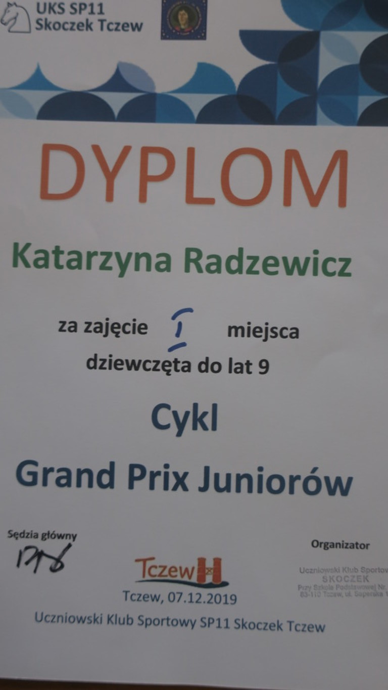 Tym razem Kasia zajęła I miejsce w grupie dziewcząt do lat 9 w Cyklu Grand Prix Juniorów oraz I miejsce w Grand Prix Juniorów – turniej VIII dziewczęta.