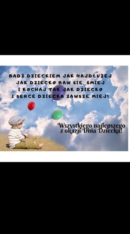 Wszystkim DZIECIOM I MAŁYM I DUŻYM składamy najserdeczniejsze życzenia: samych pięknych i słonecznych dni, spełnienia marzeń, odpoczynku, samych przyjaciół, dobrych i życzliwych ludzi wokół siebie. Wspaniałych i bezpiecznych zabaw, pięknych ocen, łatwych egzaminów i pełnych przygód wakacji w imieniu Wszystkich Pracowników Szkoły składa Dyrekcja i pedagog szkolny.