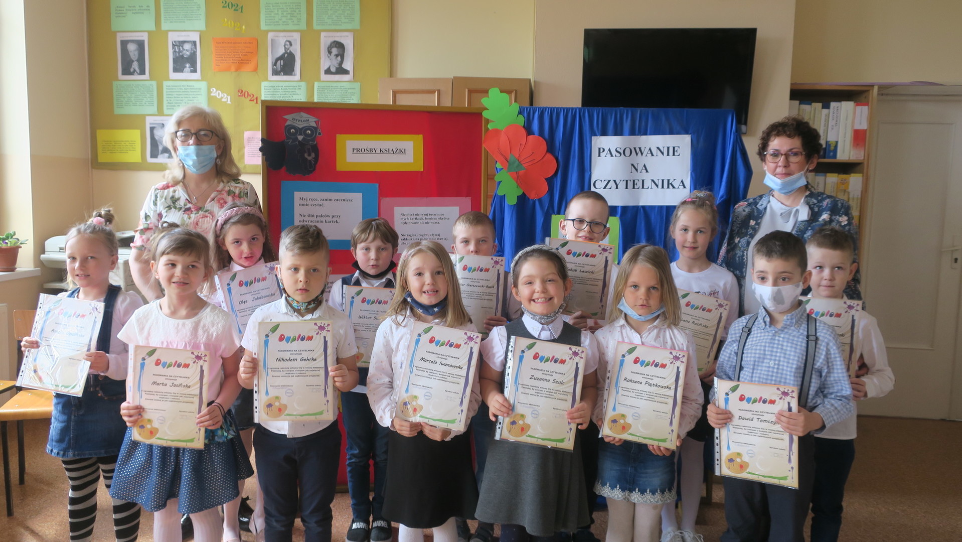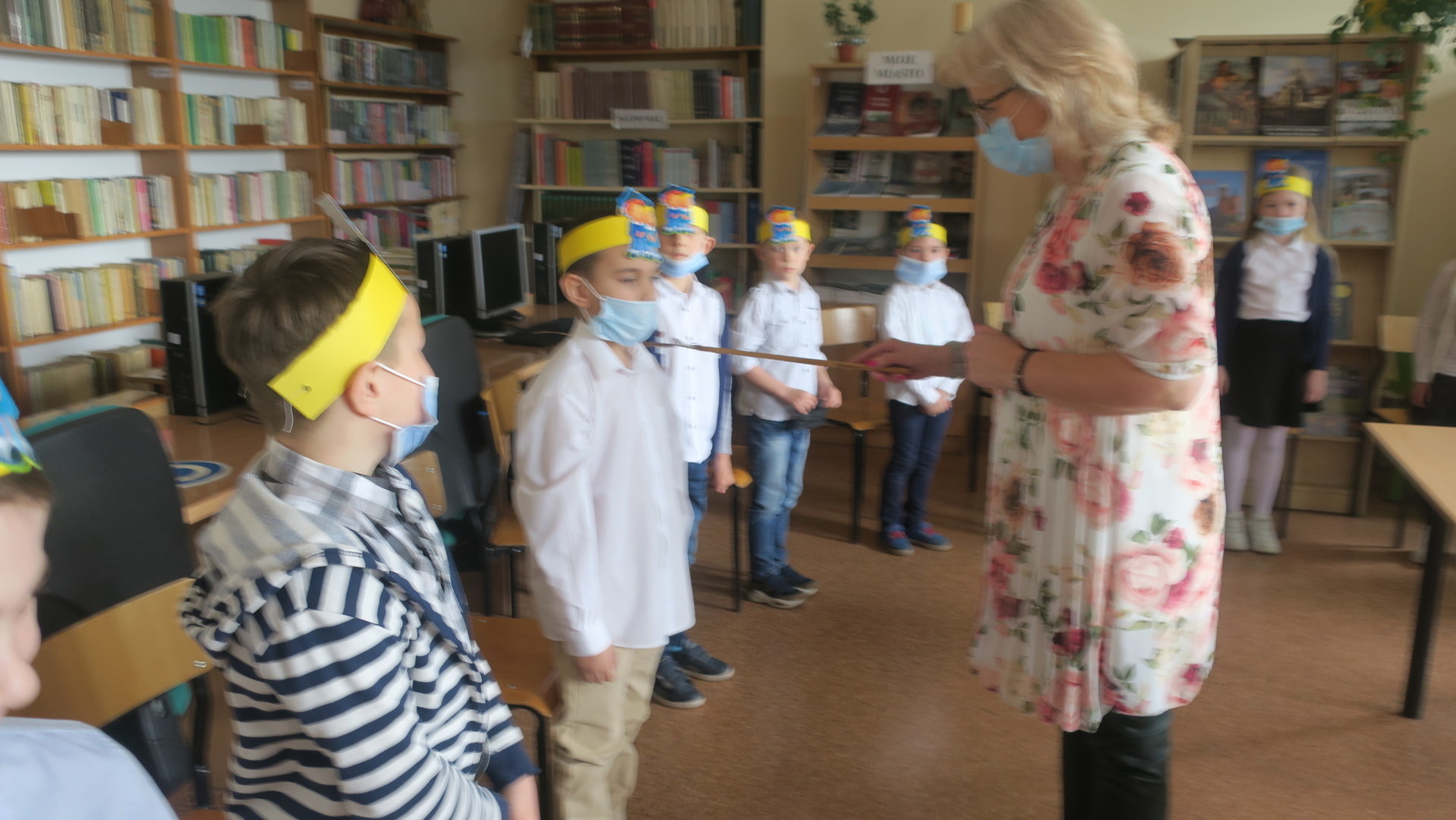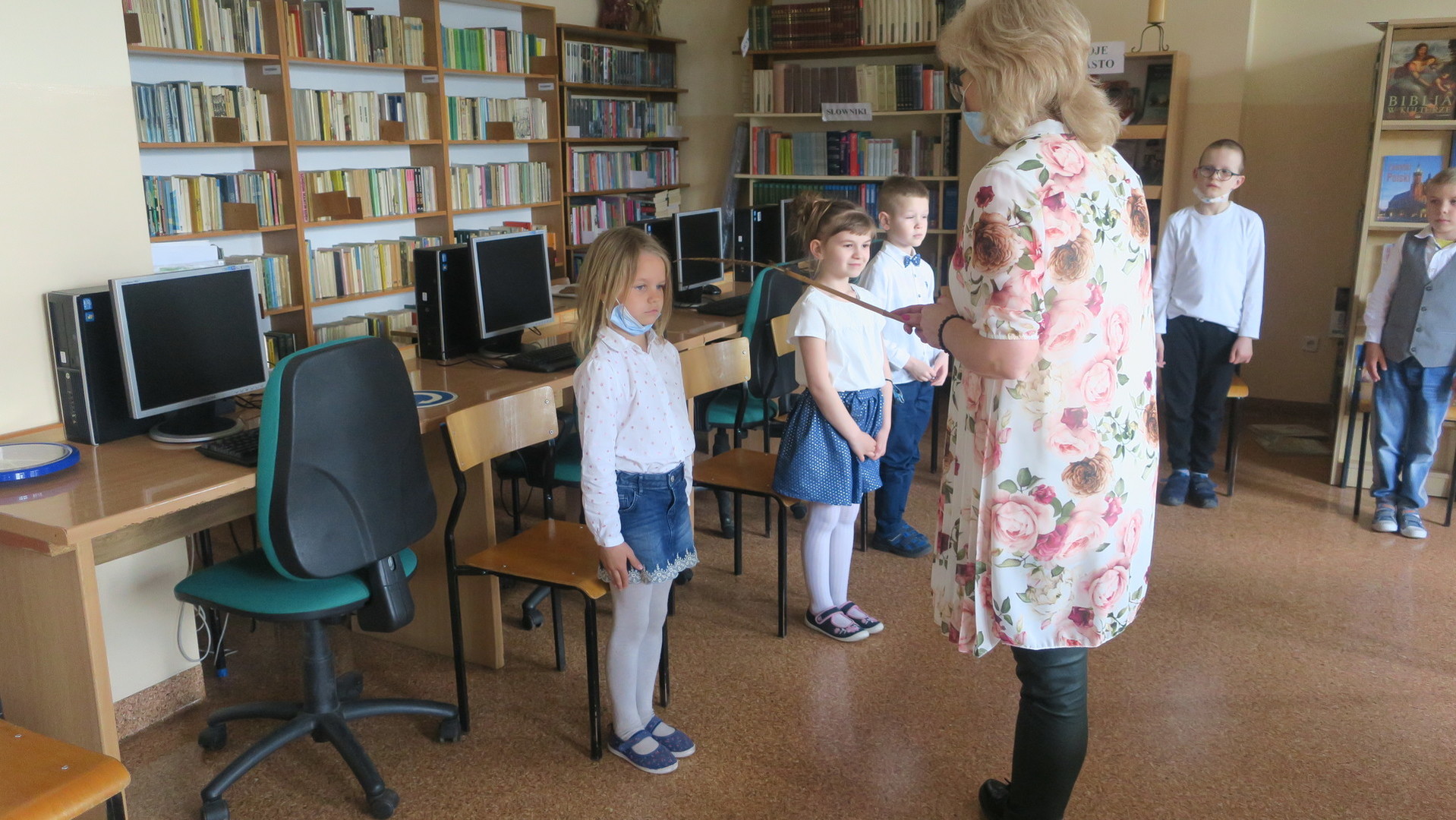 Dnia 5 maja 2021 roku uczniowie klasy I A i I B zostali pasowani przez panią wicedyrektor Katarzynę Bazę na czytelników naszej szkolnej biblioteki.