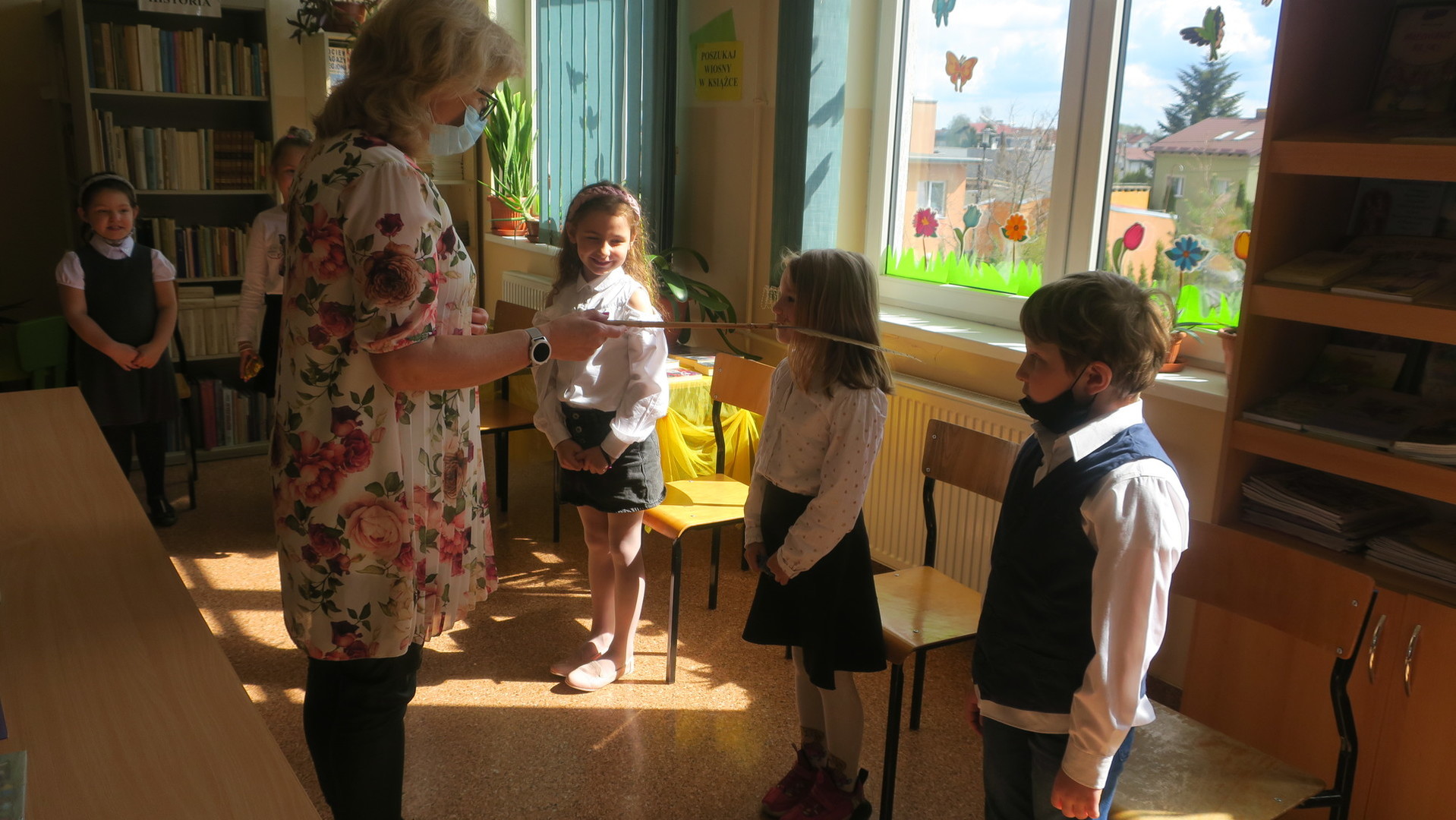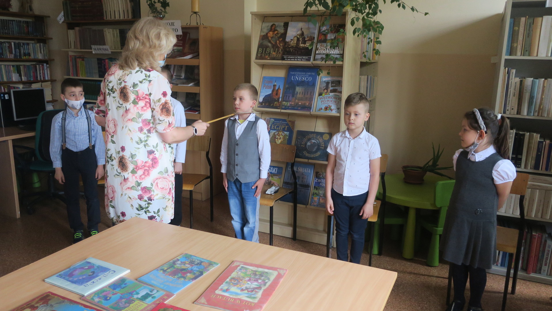 Najpierw odbyły się lekcje biblioteczne, na których to pierwszaki poznali bibliotekę, czytelnię, zapoznali się z regulaminami, nauczyli się szanować i dbać o książki oraz dowiedzieli się, jak wypożyczać książki.