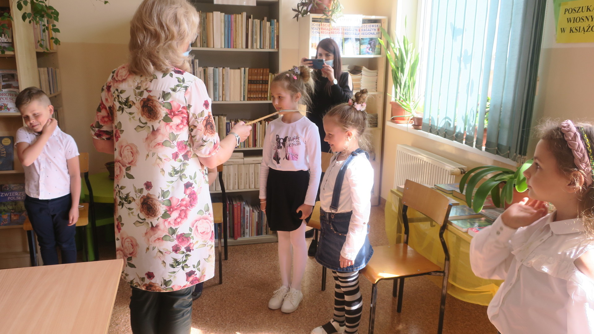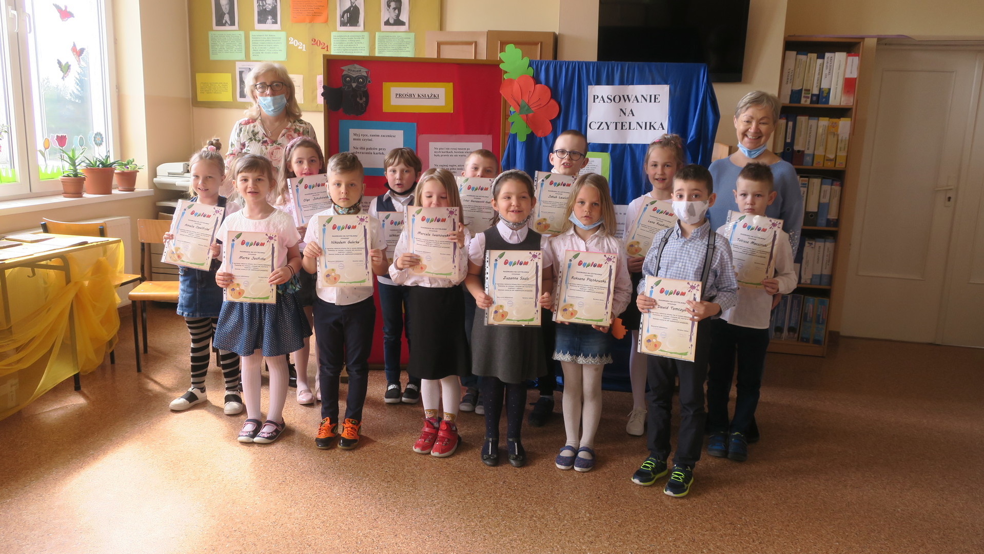 Po złożeniu uroczystej przysięgi nowi czytelnicy zostali pasowani przez panią wicedyrektor na czytelników, a następnie otrzymali dyplomy i małe upominki.