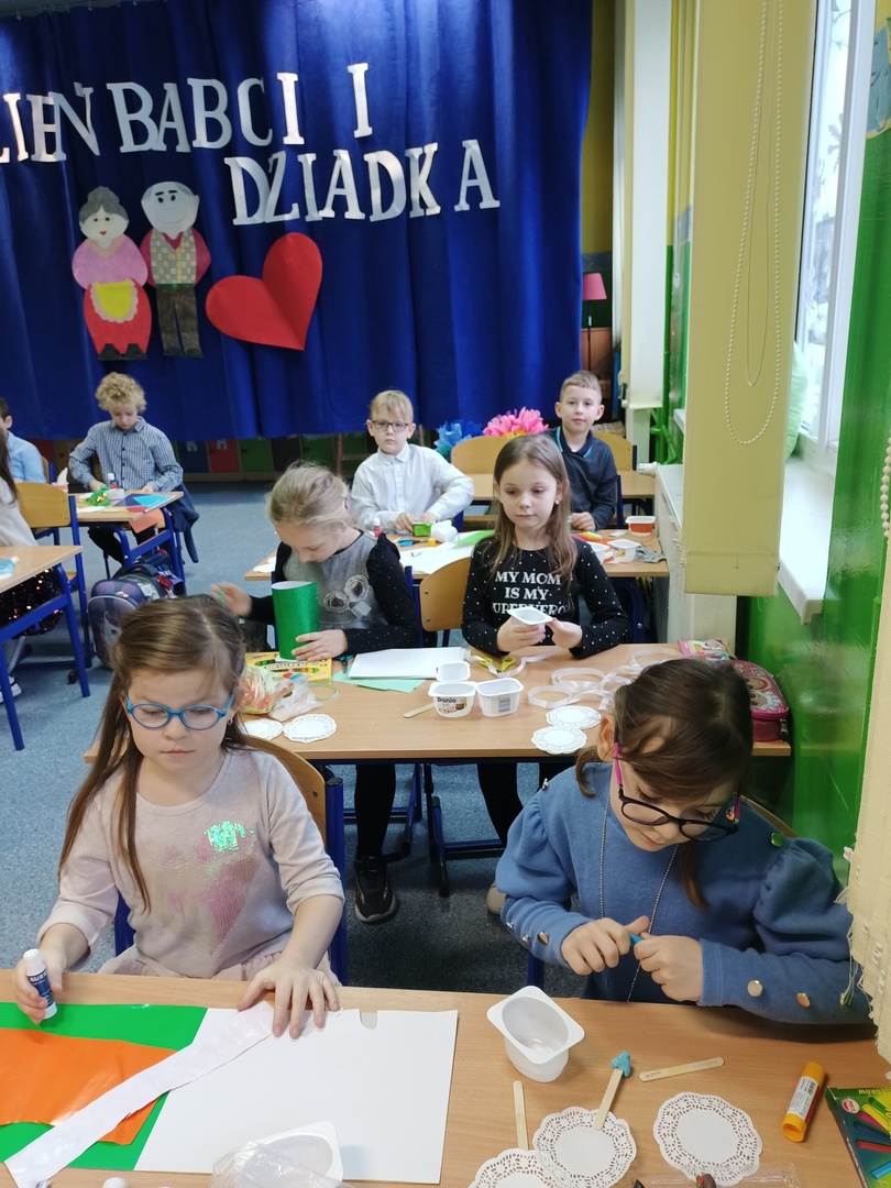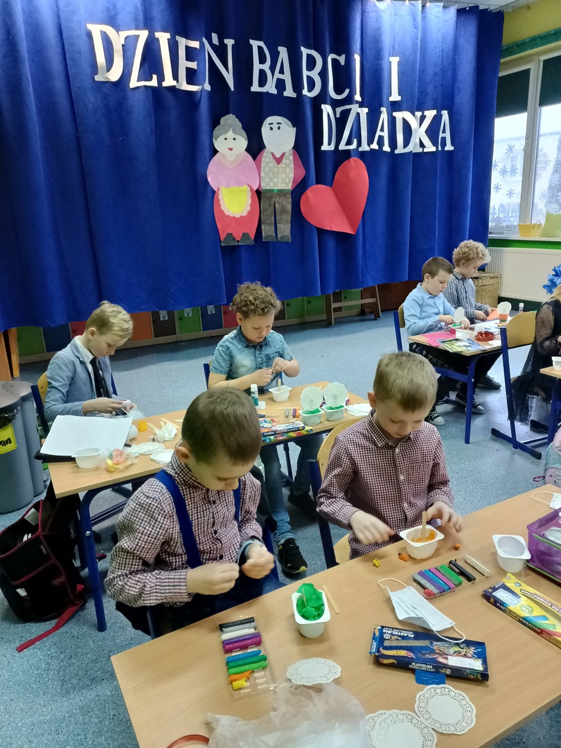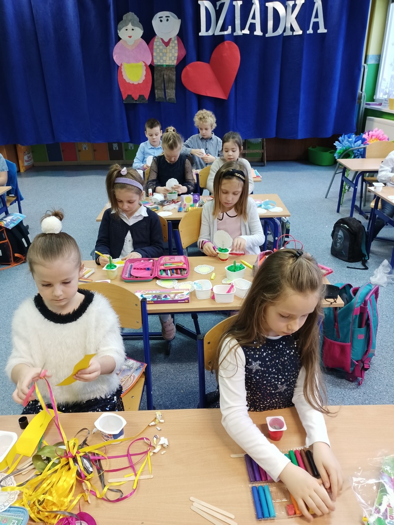 Ale nikt nie zapomina o babciach i dziadkach, klasa 1 a przygotowała życzenia, laurki i kwiatki. Klasa 2 b przygotowała paczki niespodzianki.